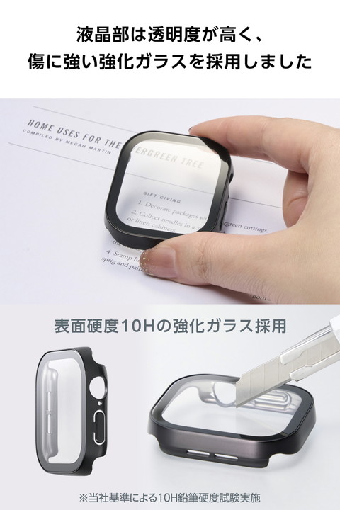 JIS保護等級 IPX7相当の防水性能で画面への水の侵入を防ぎ、端末の画面および側面部を保護し傷や汚れから守るApple Watch用フルカバーケースです。![]() ■JIS保護等級 IPX7相当の防水性能で画面への水の侵入を防ぎ、端末を傷や汚れから守るApple Watch用フルカバーケースです。 ■ポリカーボネート素材とガラスの2重構造で、Apple Watchの画面および側面部を保護します。 ■画面には、透明度が高く、傷に強い強化ガラスを採用しています。 ■表面硬度10Hの強化ガラス採用により、保護ガラス表面の傷を防止します。 ■※当社基準による鉛筆硬度試験での実力値です。 ■指紋・皮脂汚れが付きにくく、残った場合でも簡単に拭き取れる指紋防止加工を施しています。 ■特殊な飛散防止設計により、万が一割れてしまった際にもガラス片が飛散することなく、高い安全性を実現しています。 ■薄くて軽く強じんなポリカーボネート素材を使い、側面部を覆うように保護します。 ■バンドが装着されたままでも、ケースを簡単に着脱できます。 ■ケースをApple Watchに装着したままで画面の確認、本体の操作、各種ボタン操作、純正の磁気充電ケーブルへの設置が可能です。 ![]() ■対応機種:Apple Watch Series 11/Apple Watch Series 10 [46mm] ■セット内容:ケース本体×1 ■材質:ガラス、ポリカーボネート ■カラー:ブラック |