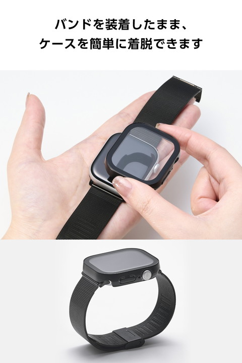 JIS保護等級 IPX7相当の防水性能で画面への水の侵入を防ぎ、端末の画面および側面部を保護し傷や汚れから守るApple Watch用フルカバーケースです。