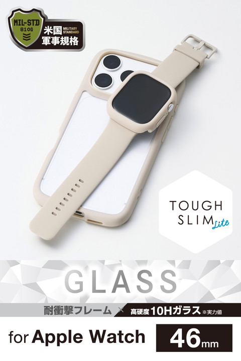 エレコム Apple Watch 46mm 用 フルカバーケース TOUGH SLIM LITE プレミアムガラス フルカバーケース TOUGHSLIM プレミアムガラス 高透明 ベージュ ┃AW-25AFCTSLBE