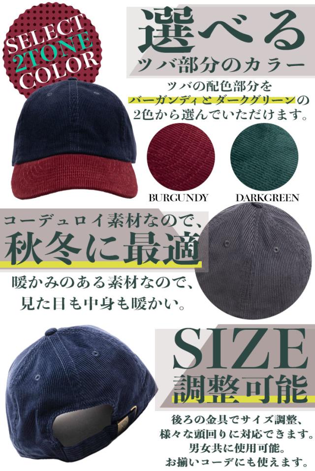 キャップ ローキャップ 帽子 ぼうし 秋 冬 小物 ファッション メンズ レディース カジュアル フリーサイズ 男性 女性 男女兼用 ユニセックス シンプルデザイン 新作 ニューハッタン NEWHATTAN コーデュロイ ツートン バイカラー2TONE 配色カラー 2色配色 2色 ネイビー 紺 ダークブラウン 茶 濃茶 タン ベージュ サンド クリーム バーガンディ 赤 ワイン ダークグリーン 緑 ダークグレーブラウン オフホワイト 白 生成り 茶 茶色 灰色 グリーン 新作カラー あたたかい 暖かい帽子 秋冬帽子 素材 素材綿 コットン コットン100% サイズ 調整 日除け CAP 秋冬 コーデ 可愛い かわいい 綿 綿100% サイズフリー サイズ調整 浅め メタルバックル 暖かい 冬用 秋用 カラバリ お洒落 おしゃれ おでかけ 自転車 通勤 通学 親子コーデ お揃いコーデ おソロ カップルコーデ 恋人コーデ コーディネート カジュアル キレイめ お揃い シンプルデザイン 日よけ 散歩 イベント ダンス 冬物 秋物 季節 紫外線対策 防寒 浅め おでかけ 日除け 対策 さんぽ ウオーキング 母の日 ギフト プレゼント クリスマス バレンタインデー ホワイトデー 父の日