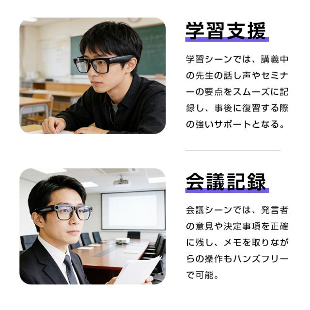5.高感度マイクとノイズキャンセリングアルゴリズムにより、人声をクリアに捉え、環境雑音を効果的に抑制します。会議の議事録、ひらめきのメモ、音声リマインダーなど、重要な情報を両手が塞がっていても、見上げるだけで録音開始。