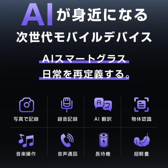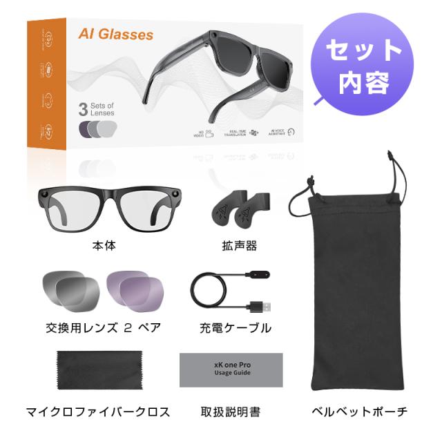 1.本品のスマートグラスは、3種類の交換可能レンズ(透明レンズ・サングラスレンズ・ブルーライトカットレンズ)を同梱。シーンや目的に応じてカスタマイズでき、1台で多彩な役割を果たします。
