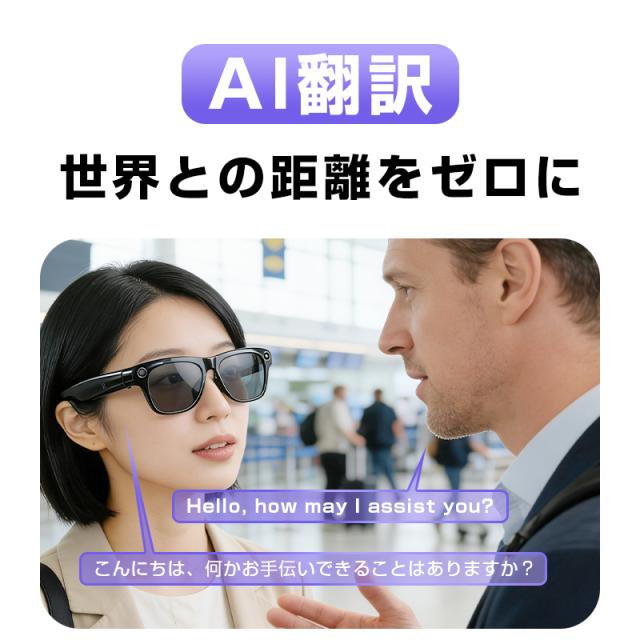 スマートグラス カメラ付き Bluetooth5.4 ワイヤレスオーディオグラス AI検索 カメラ内蔵 1080P解像度 撮影 録音 翻訳機 画像認識 専用アプリ ファッションサングラス 3種類レンズ交換可能 新発売 軽量 ブルーライトカット 90日安心保証付き【PL保険加入済み製品・安心】