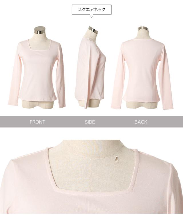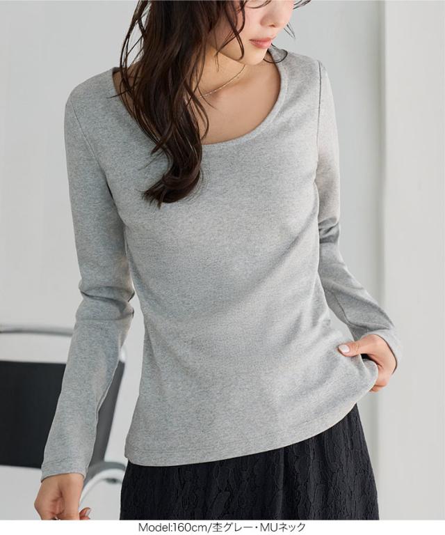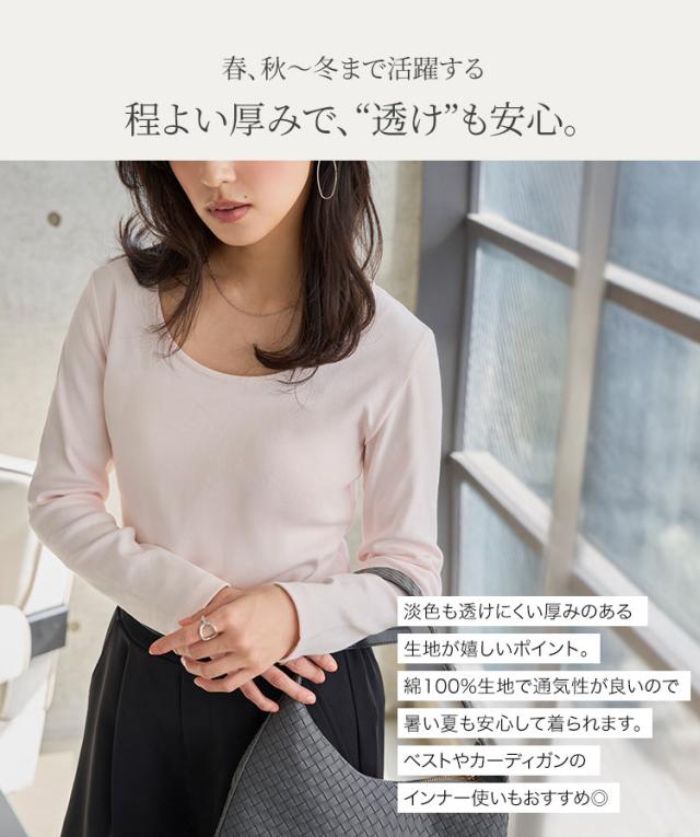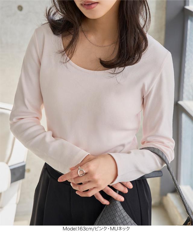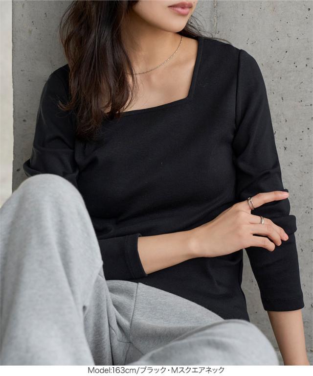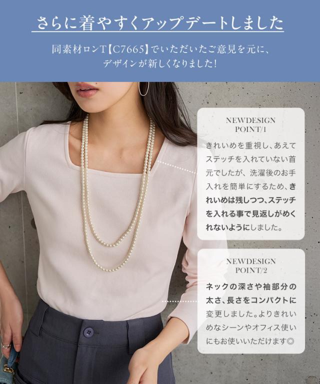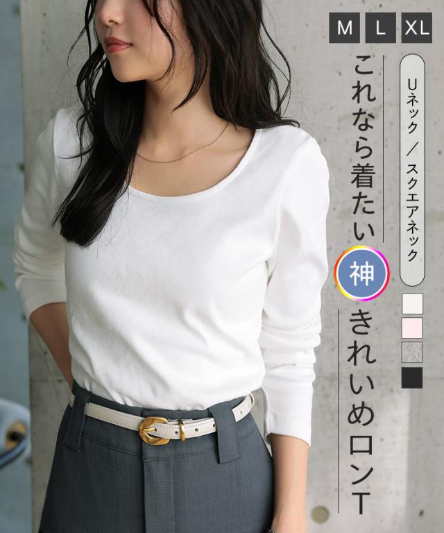 春新作 [ M L XL 選べるタイプ ] 深開きスクエア Uネック 長袖Tシャツ C7770 入荷済 レディース 20代 30代 40代 トップス 長袖 Tシャツ C7316 C7463 ロンT カットソー 綿100 コットン スクエアネック Uネック 深U