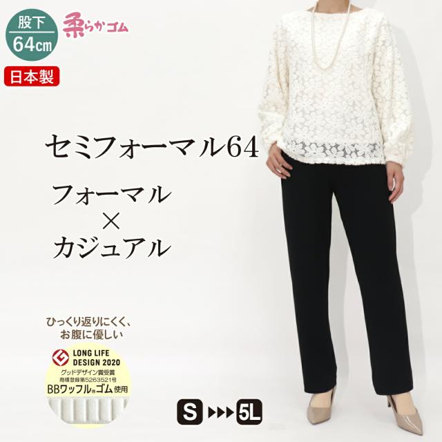 シニア 婦人服 シニアファッション パンツ 冠婚葬祭 洗える ウエストゴム らく レディース 日本製 総ゴム ストレッチ 高齢者 服 S M L LL 3L 4L 5L 大きいサイズ 小さいサイズ 股下64cm レディースパンツ シニアパンツ 【9608】