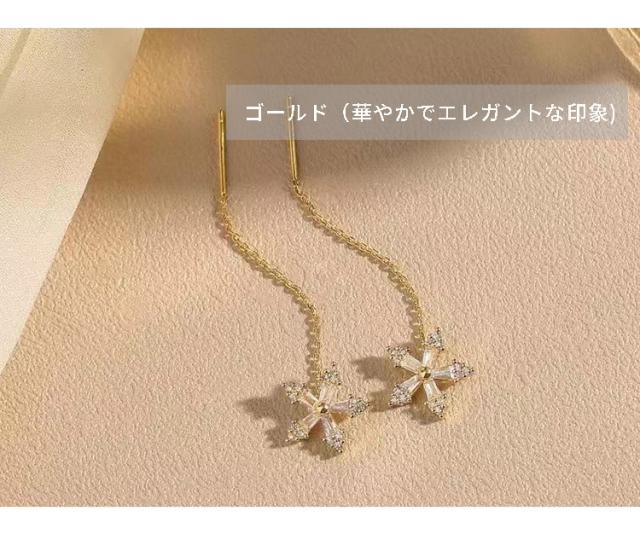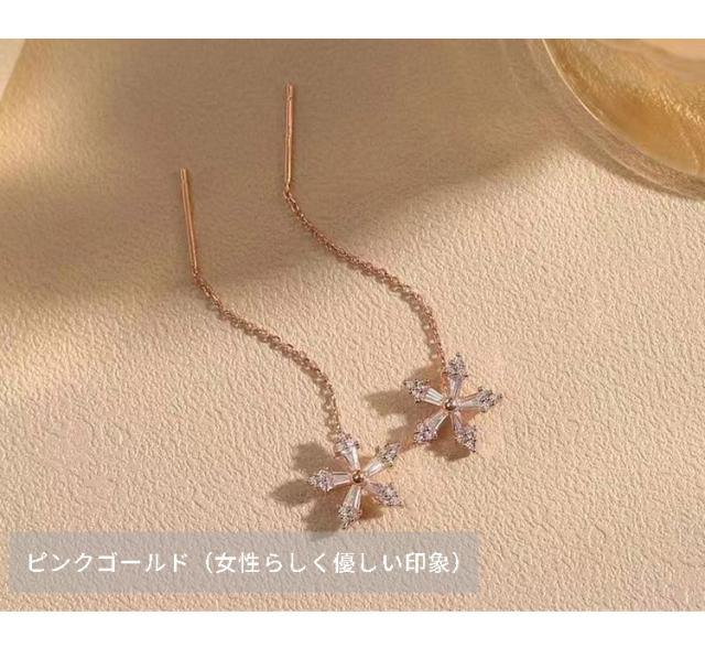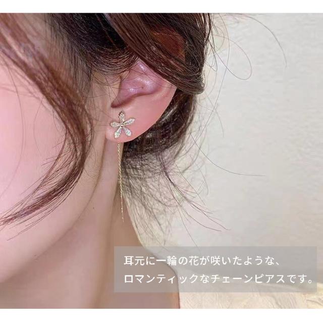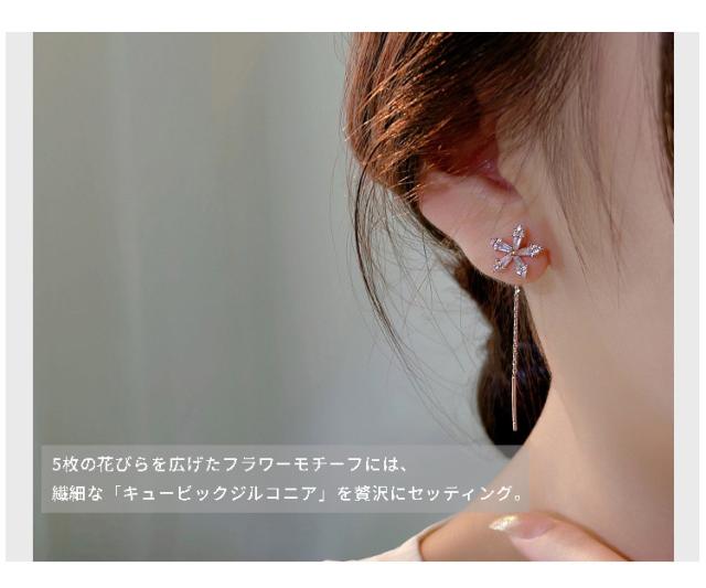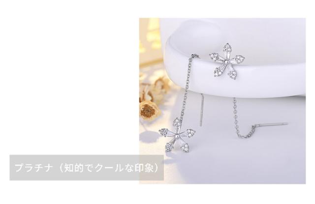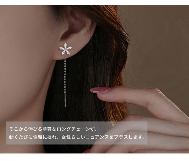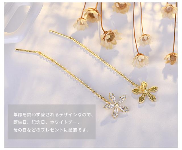 ピアス レディース 花 フラワー 揺れる ロング チェーンピアス アメリカンピアス キュービックジルコニア 18kコーティング ゴールド プラチナ ピンクゴールド 金属アレルギー対応 華奢 上品 大人可愛い おしゃれ 結婚式 プレゼント ギフト 送料無料