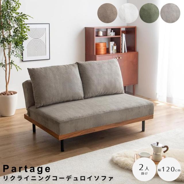 素材の組み合わせが魅力の、『Partage(パルタージュ) リクライニングコーデュロイソファ』。