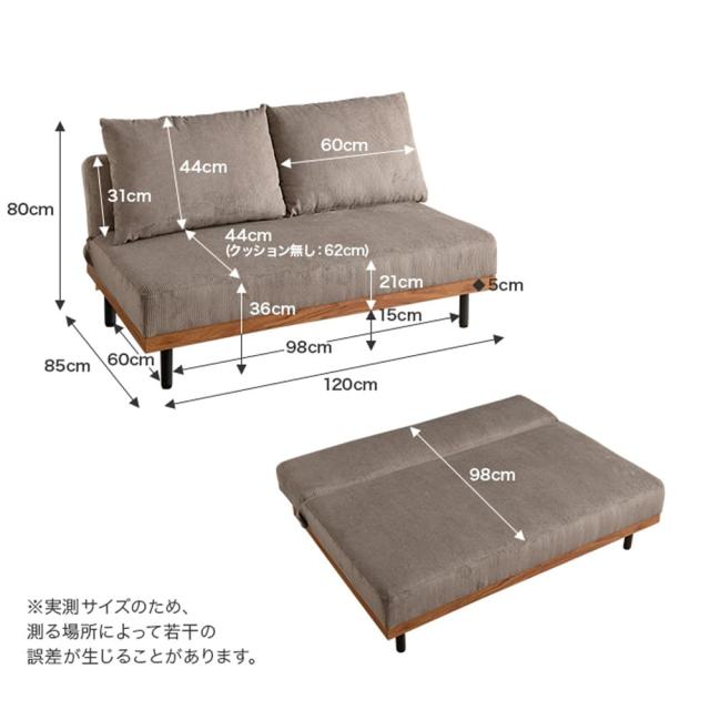 ■本体サイズソファ時:幅120cm×奥行85cm×高さ80cm×座面高36cm