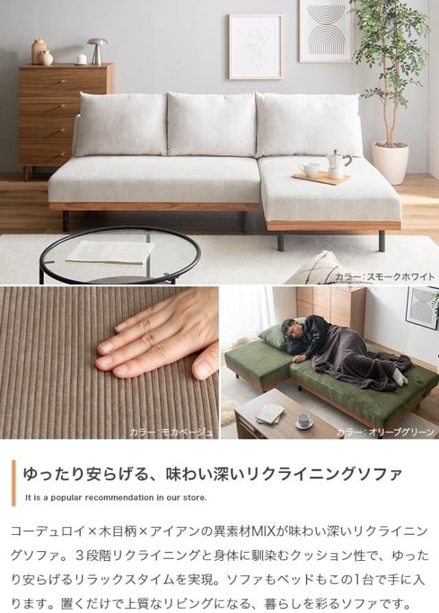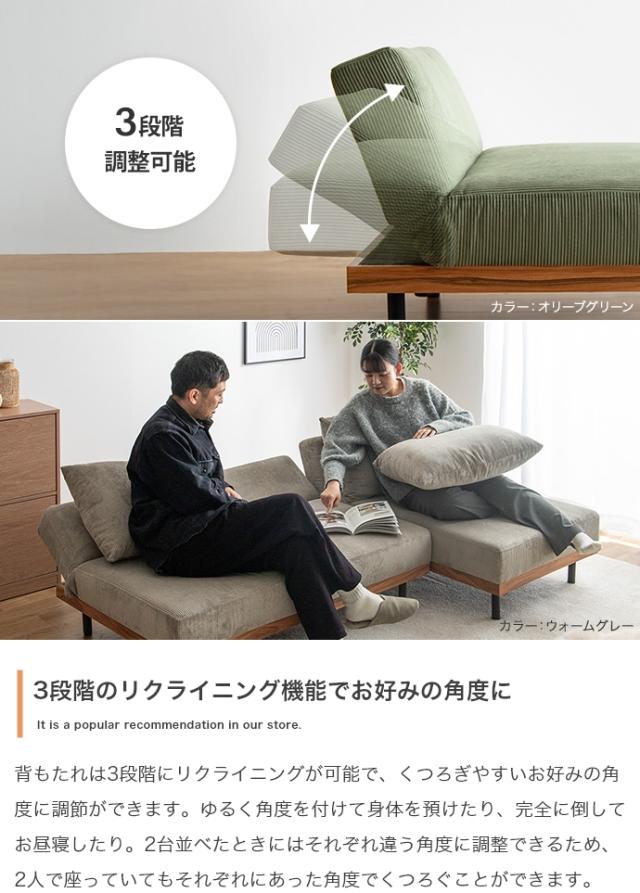 くつろぎ方を自由に変えられる、『Partage(パルタージュ) リクライニングコーデュロイソファ』。