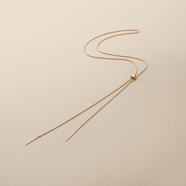 シンプルながら、インパクトのあるチェーンが印象的なラリエットネックレス。