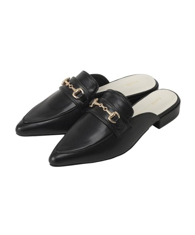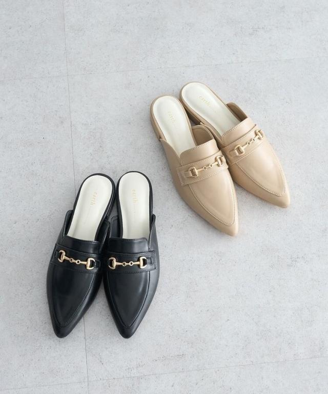 さっと履けて上品見えする大人のミュール洗練されたポインテッドトゥと、控えめに輝くビットが印象的なデザインです。足元に自然な抜け感を与えるミュールタイプなので、かっちりしすぎず軽やかな印象で履いていただけます。脱ぎ履きがしやすく、外出前の準備や移動の多い日にも便利です。低めのヒール設計で安定感があり、歩行時の負担を抑えてくれるのも嬉しいポイントです。デニムなどのカジュアルスタイルには上品さをプラスし、きれいめコーデには程よく力の抜けた印象を与えてくれます。シンプルなデザインのため、幅広い服装と相性が良く、毎日のコーディネートに取り入れやすい一足です。大人らしい可愛さと実用性を兼ね備え、日常使いに頼れる存在になります。※モデル着用画像は、光の当たり具合で色味が違って見える場合がございます。※お使いのモニター環境によって商品の色味が違って見える場合がございます。