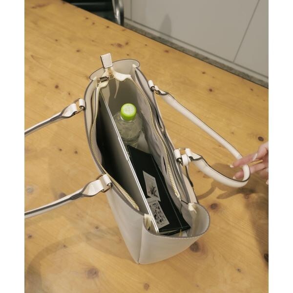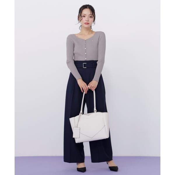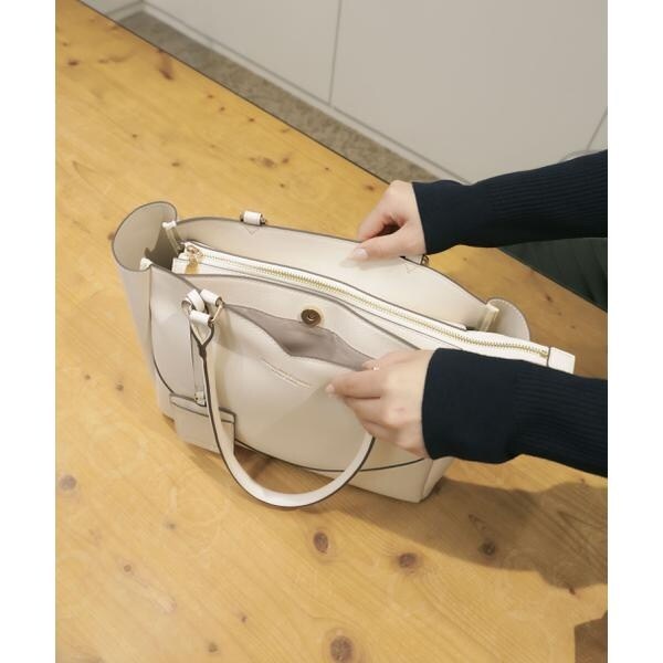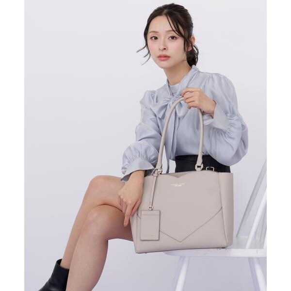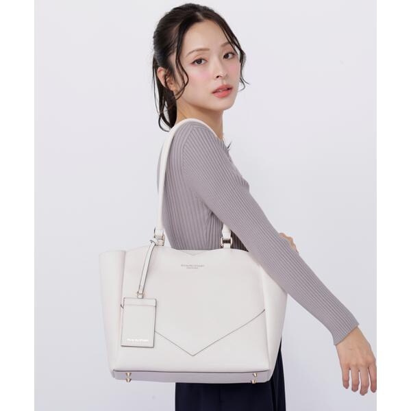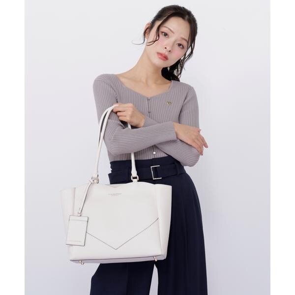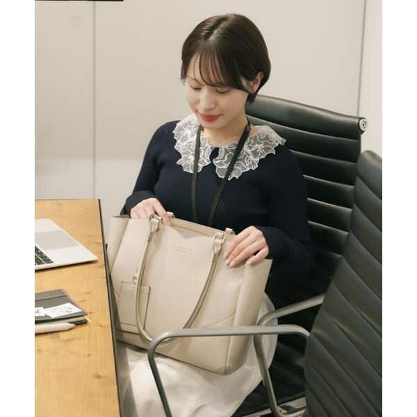 さりげないハートモチーフのカッティングが大人の可愛さを引き立てるA4サイズ対応のトートバッグ。縁取りしたコバ配色が全体を引き締める品の良いアクセントに。外側には大きなポケット、内側にはファスナーポケット、パッチポケット付き。A4ファイルや書類、PCが収納できるサイズで実用性があります。可愛さときちんと感を両立したデザインは、オフィスへの通勤シーンにおすすめです。※撮影時照明の関係により、色味が違って見える場合がございます。またパソコン・スマートフォンなどの環境により、若干製品と画像のカラーが異なる場合もございます。予めご了承ください。商品の色味は、商品単品画像をご参照下さい。※商品画像はサンプルのため、色味やサイズ等の仕様に変更がある場合がございますので、予めご了承ください。