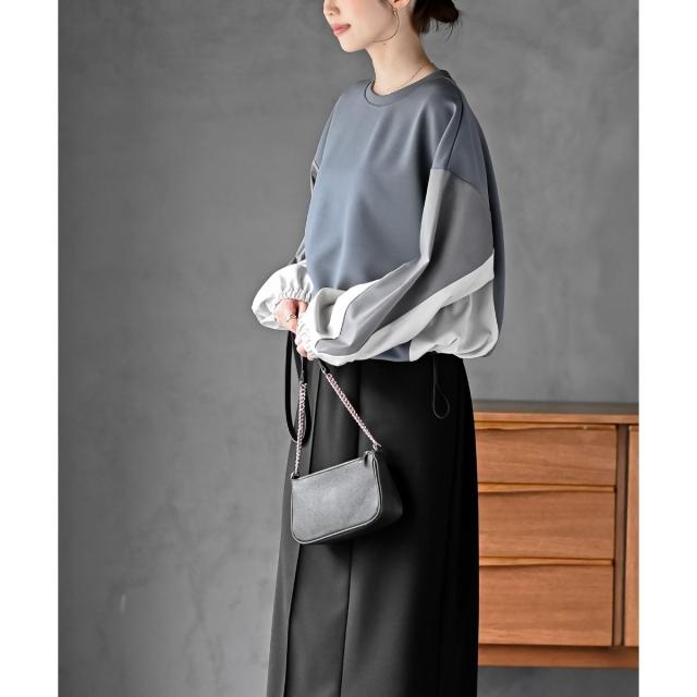 袖の配色使いがポイントのトップス。