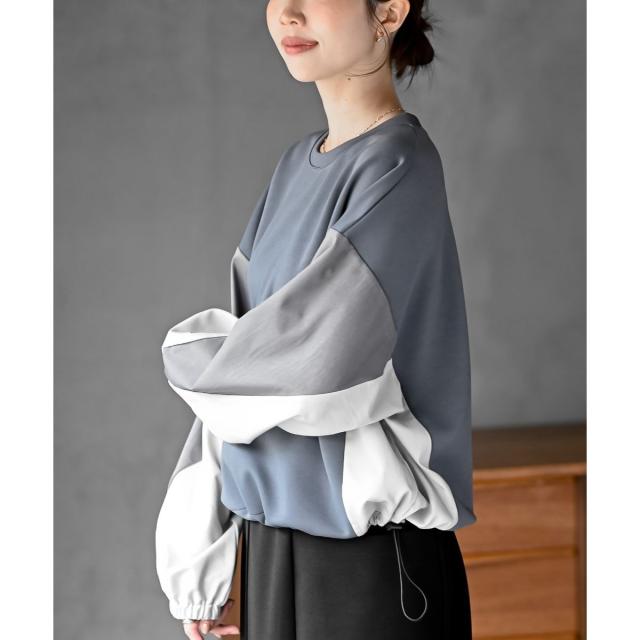 配色裾ドロストプルオーバー