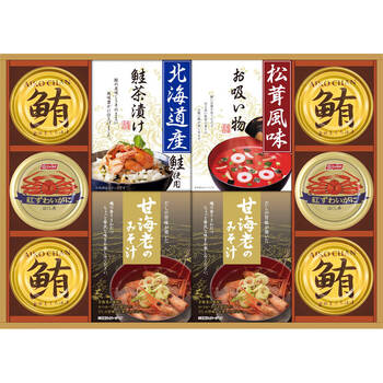 ・永谷園松茸風味お吸い物:4袋×各1、紅ずわいがにほぐし身:55g×2、鮪油漬フレーク:70g×4