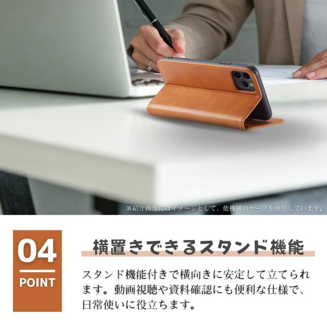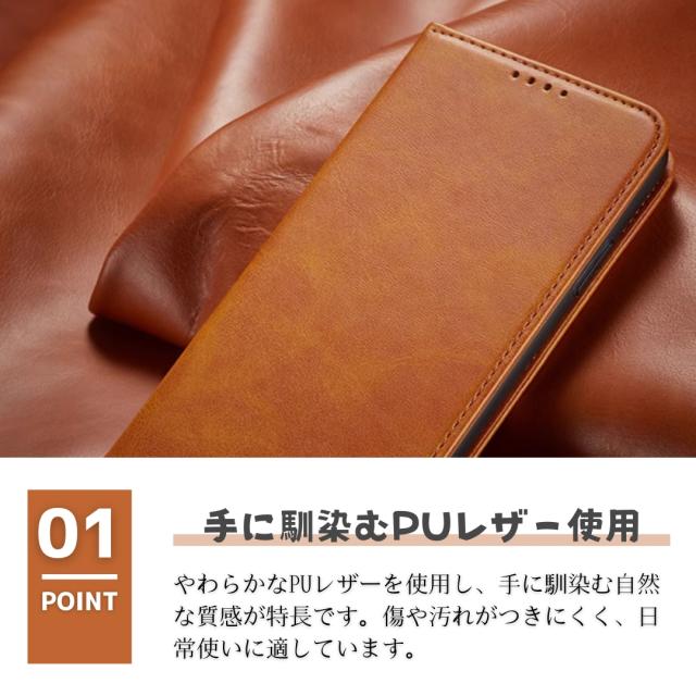 外側は高級感のあるPUレザー、内側は衝撃をやわらげるTPU素材を採用し、大切な端末をしっかり保護します。