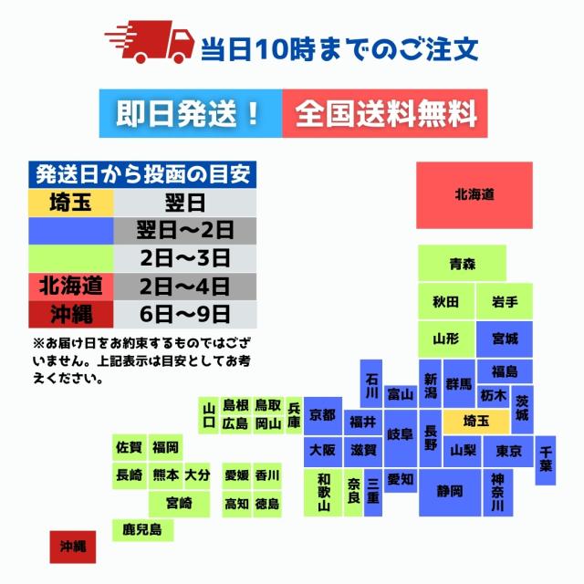 ※通常、発送後1〜2日程度(一部地域を除く)でのお届けとなりますが、天候や交通状況などにより遅延する場合がございます。
