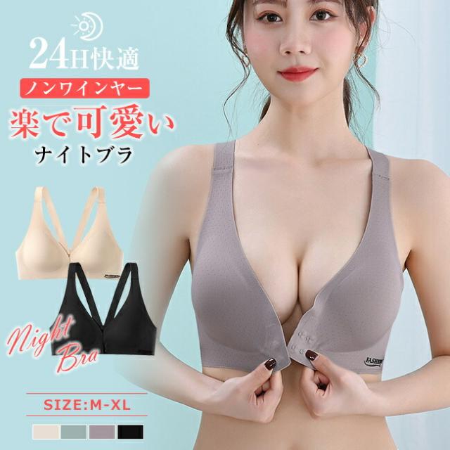 ナイトブラ 脇高ブラ 育乳 前ホック インナー 下着 ナイトウエア 特集 M(40-50kg) L(50-57kg) XL(57-72kg) ライトブルー オフホワイト ライトパープル ブラック