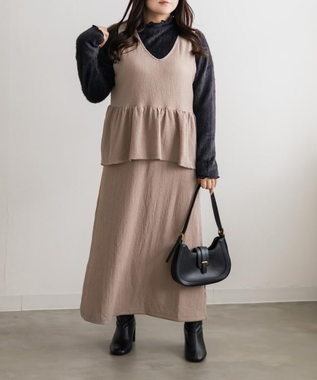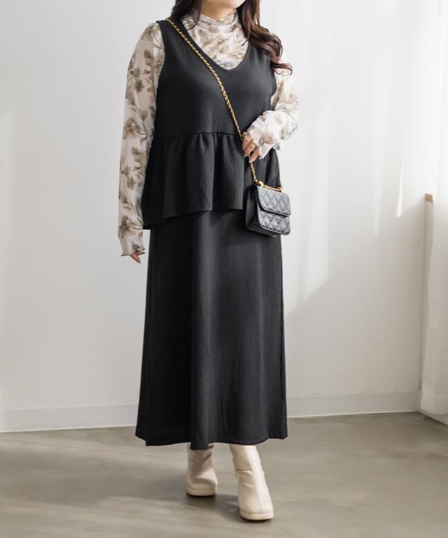 大きいサイズ/レディース/3L/4L/ペプラムジャンスカワンピース