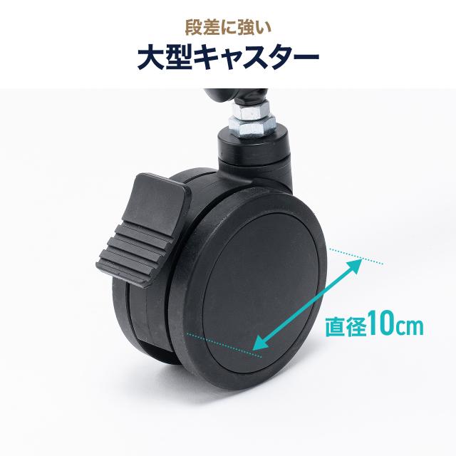 ●直径100mmの大型キャスターを採用し、4輪すべてに車輪・車軸ロックを搭載。移動時も高い安定性を確保します。