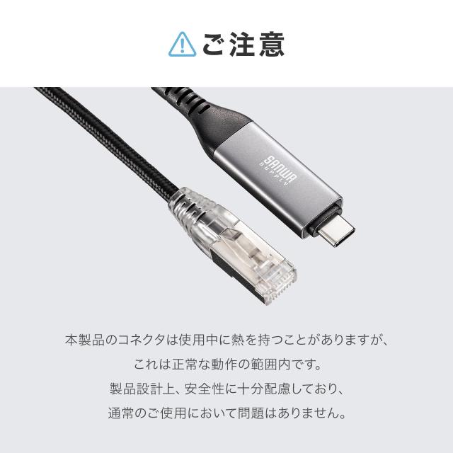 ●USB Type-CポートをLANポート(RJ-45コネクタ)に変換するケーブルです。●LAN(RJ-45)ポートがないパソコンでも、変換アダプタなしで直接有線ネットワーク接続ができます。
