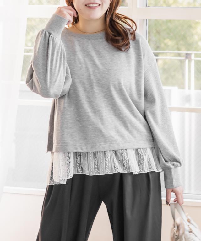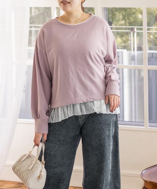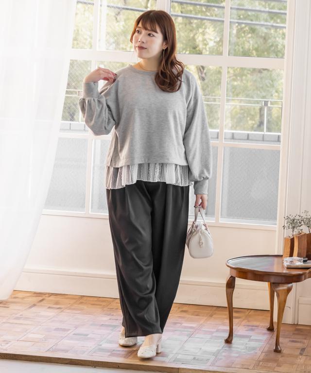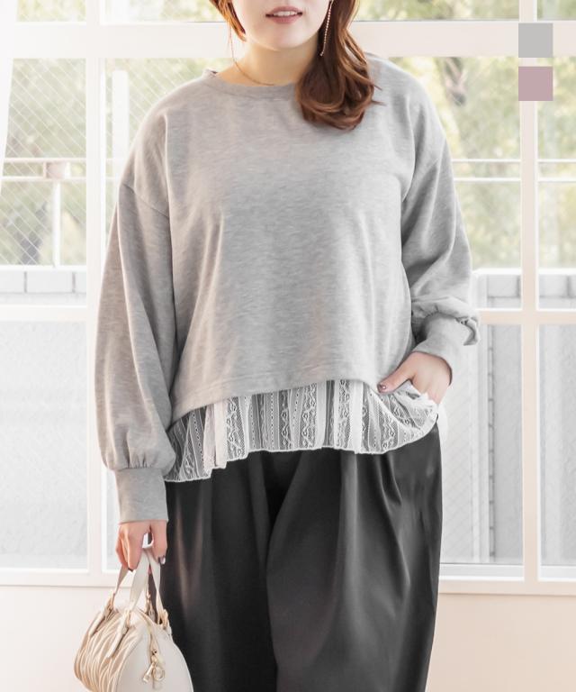 大きいサイズ/レディース/3L/4L/5L/ミニ裏毛トレーナー&レースタンクトップセット