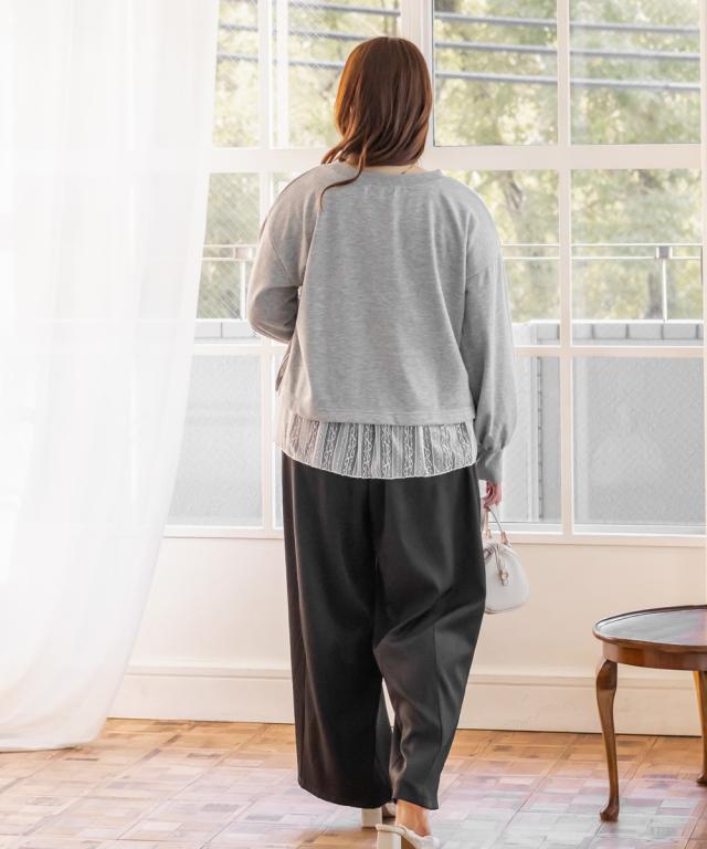 | 3Lサイズを着用しました!トップスはゆるっと着られるサイズ感で、インナーも程よくゆとりがある伸びのいいカットソー生地だったのでとってもラクな着心地です◎リラックスして着られました! トップスの着丈は長すぎないので、裾を出してきてもスタイルアップして見えました。2枚レイヤードするだけで抜け感が出て野暮ったくならず洗練された印象です。インナーは程よく丈があるので下お腹周りも自然にカバーしてくれすっきり見えします!ラフなのに女っぽさ満点の1枚で、お出かけにぴったり!もちろんトップス・インナーは別で着回しできるので、色々なスタイリングが楽しめます♪ |