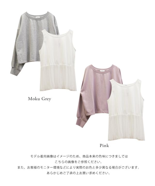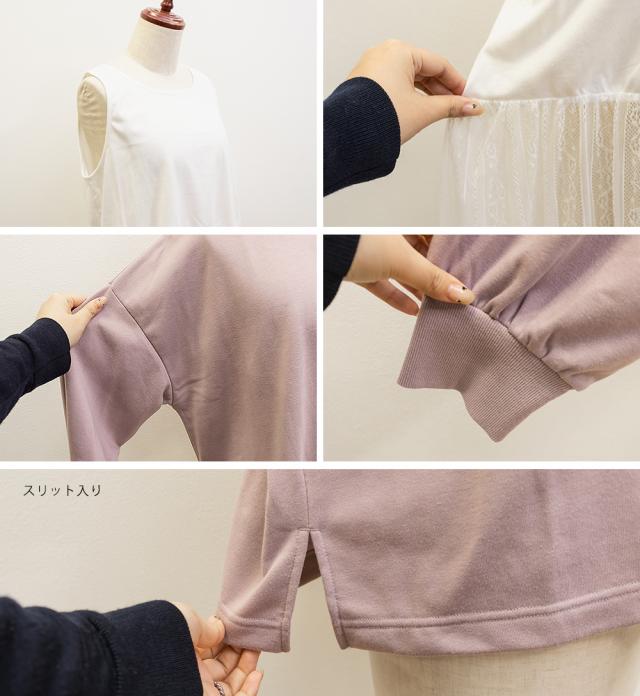 | トレーナー:程よく厚みがありなめらかな素材です。 タンクトップ:薄手のカットソー素材です。 |