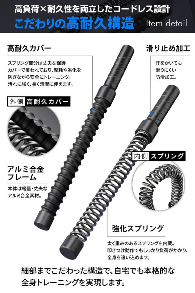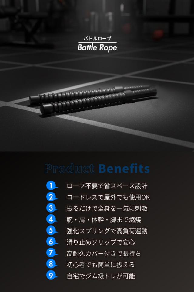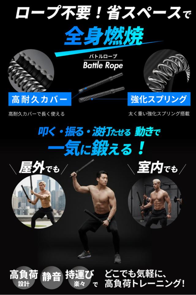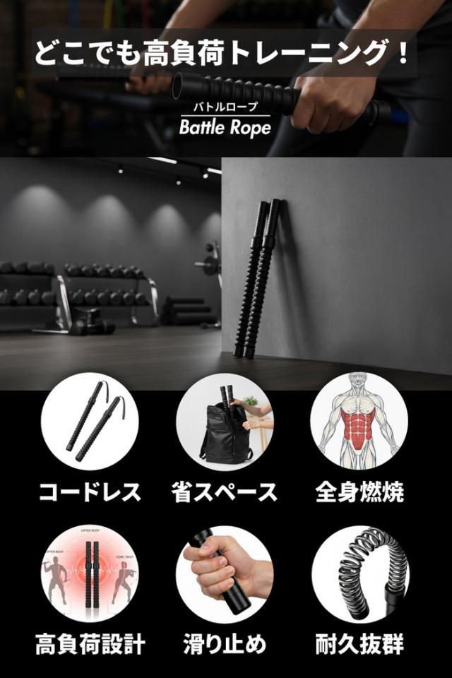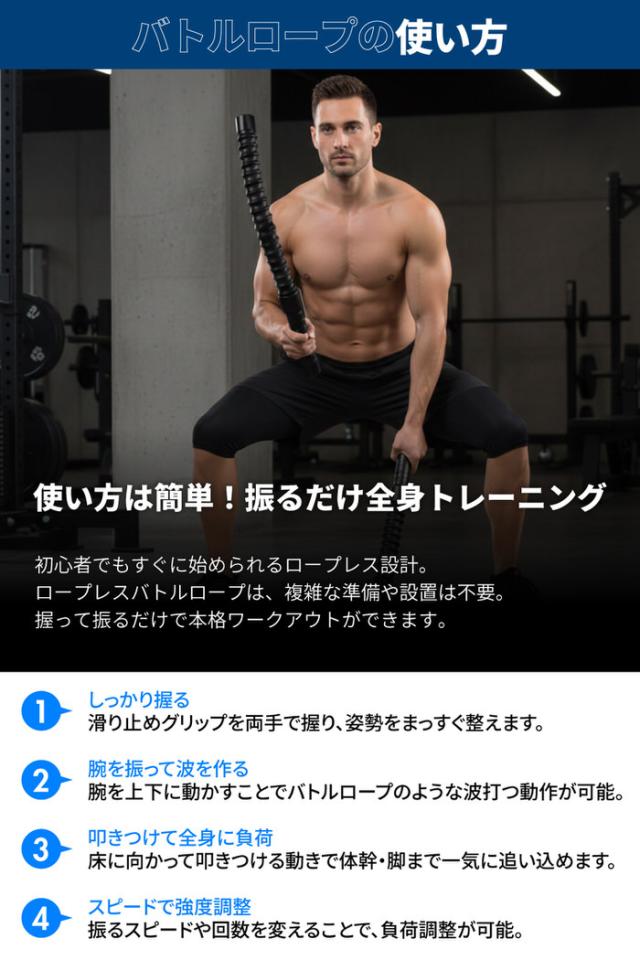 コードレス バトルロープ | 筋トレ ロープ トレーニング コードレス コードレスバトルロープ クロスフィット 筋トレグッズ ワークアウトロープ エクササイズ 有酸素運動