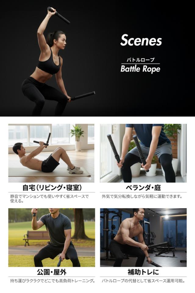 コードレス バトルロープ | 筋トレ ロープ トレーニング コードレス ロープレス クロスフィット 有酸素運動 ワークアウトロープ 全身トレーニング コードレスバトルロープ 自宅 2本セット フィットネス 筋トレグッズ エクササイズ ロープ 紐 バトル ロープ