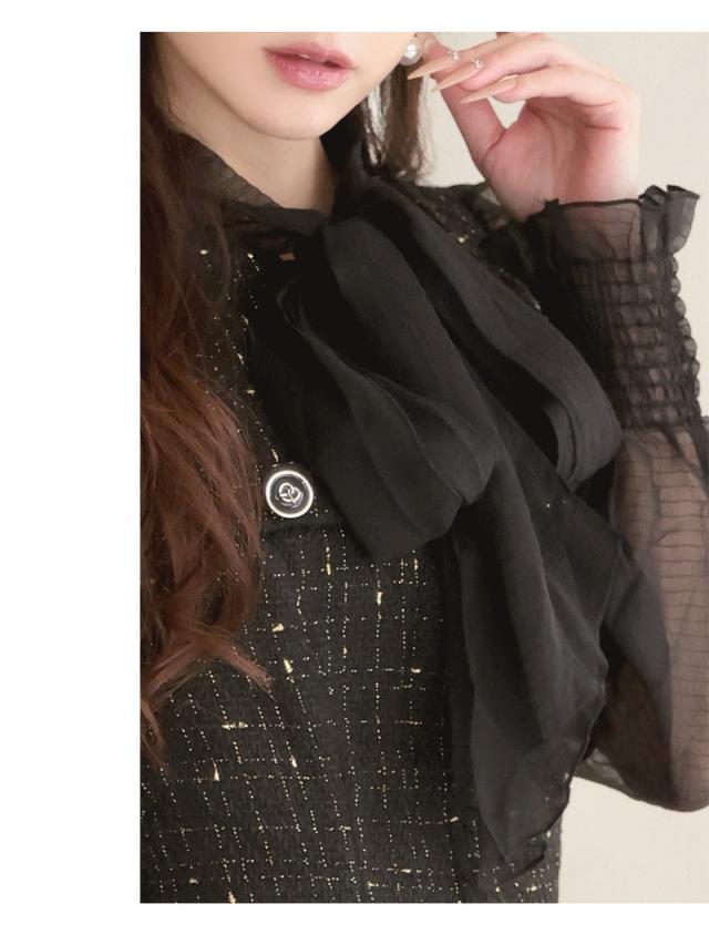 ☆シアーな質感のシフォン袖が、ツイードの重厚感に軽やかな甘さをプラスしてくれます!