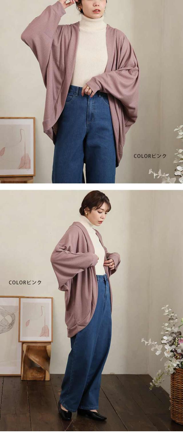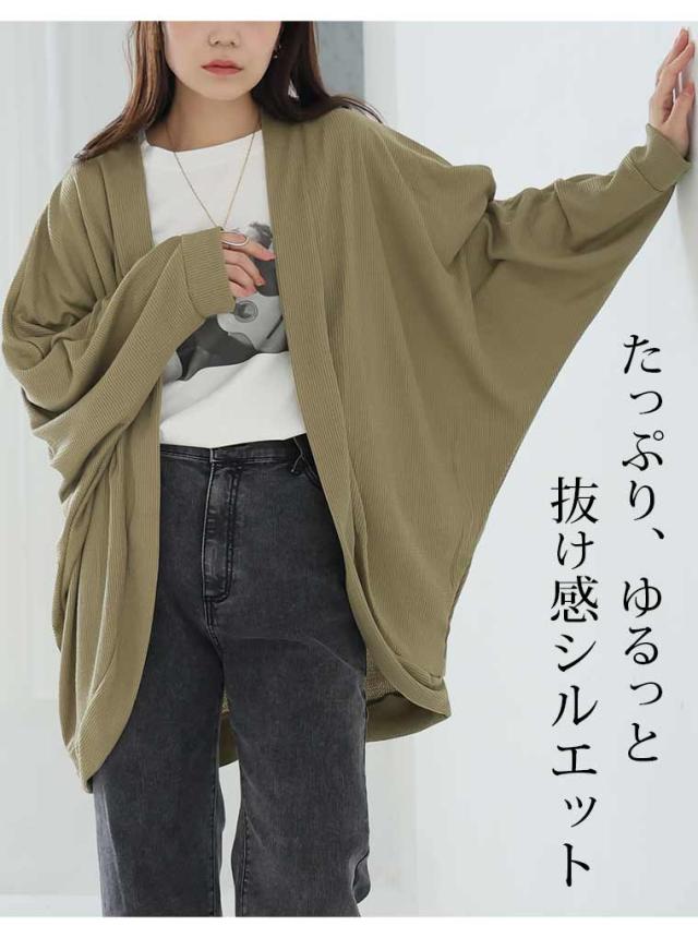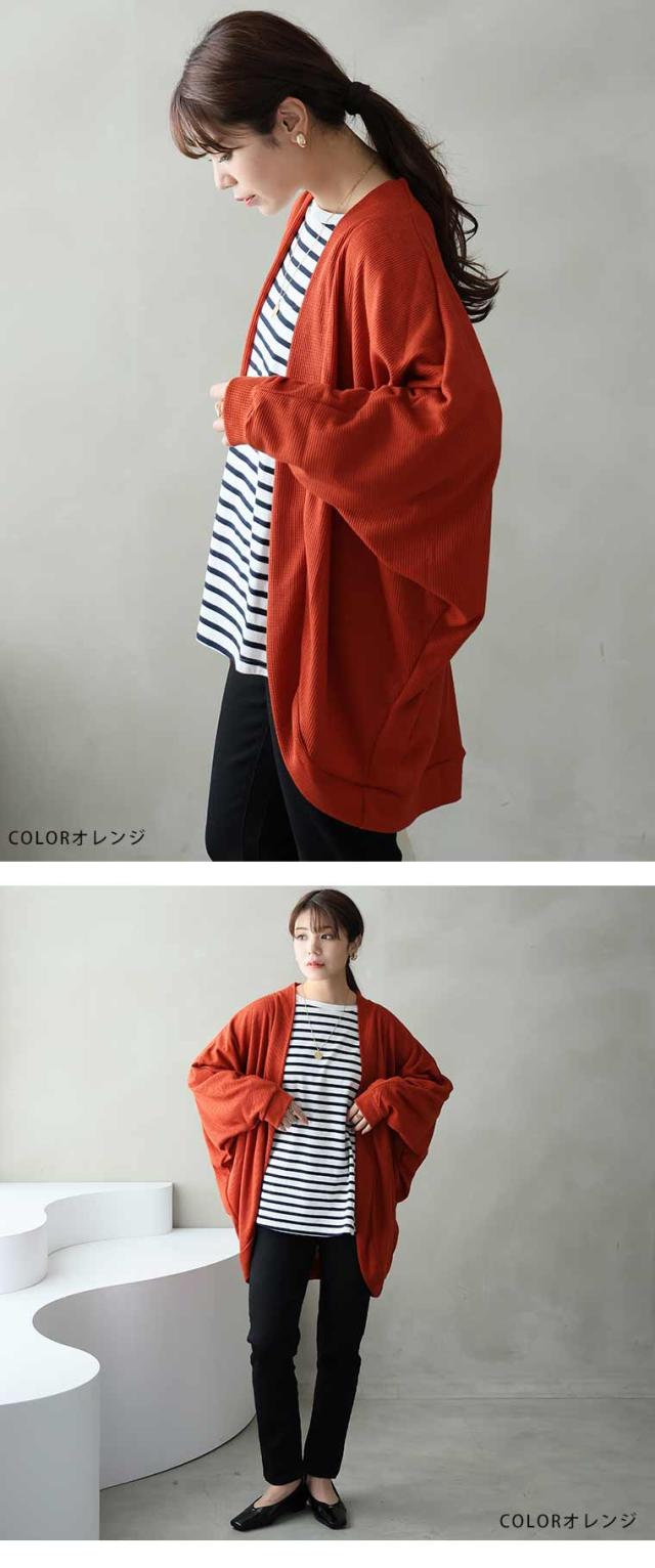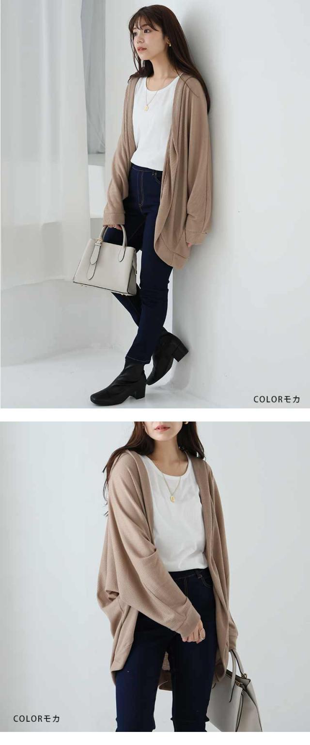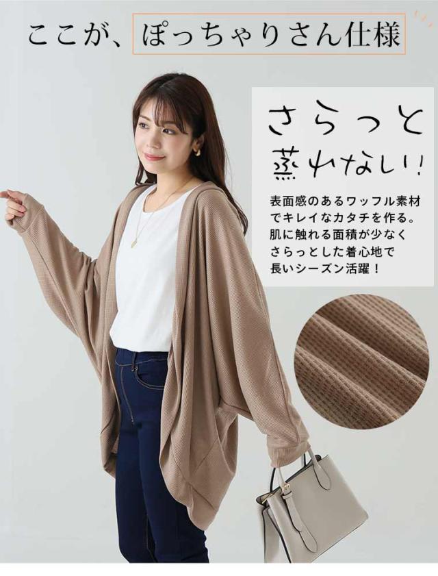 新作 大きいサイズ レディース カーディガン | たっぷり ドルマンカーディガン ワッフル素材 [862008] LL 3L 4L 5L 6L