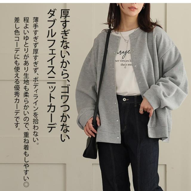 体型を拾いにくいダブルフェイスニットカーデ。体型別コメント