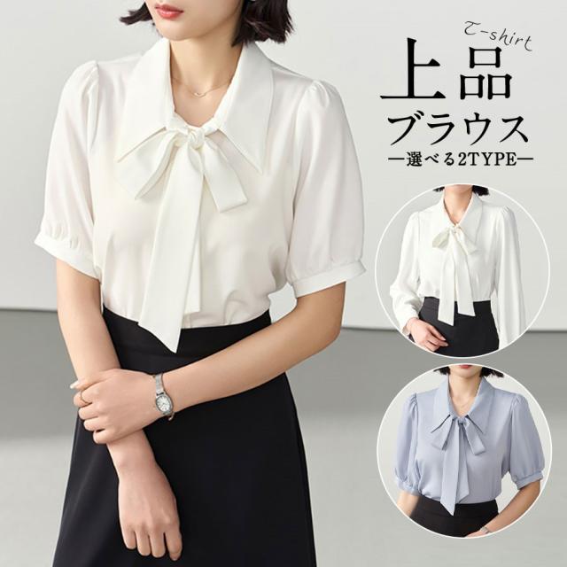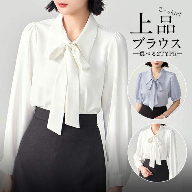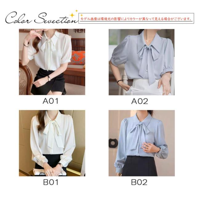 ブラウス トップス レディース 長袖 ボウタイシャツ シフォン シャツ フォーマル 体型カバー リボン シンプル カジュアル きれ
