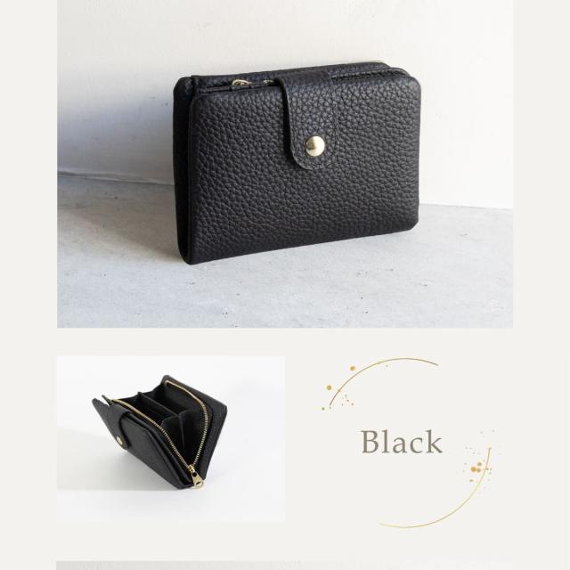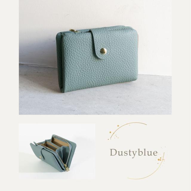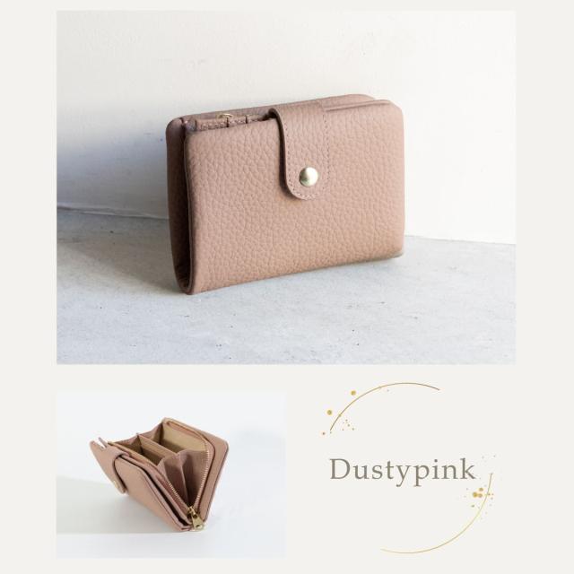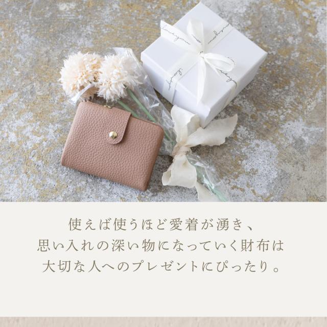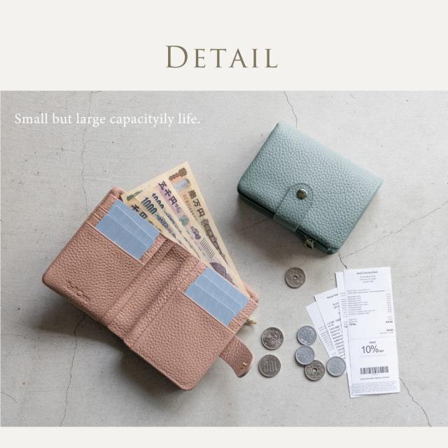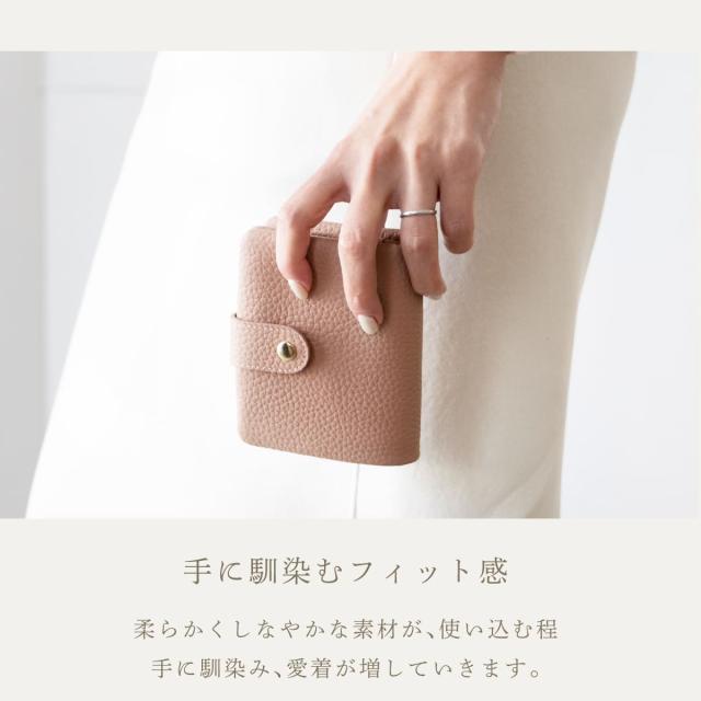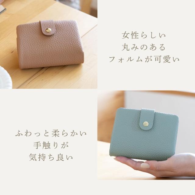 やわらかな手触りと、コロンとした形が可愛い二つ折り財布です。フォルムの秘密は袋縫い製法。職人の高度な技術で、ふんわりとした形状と質感を実現しました。素材にもこだわり、表地は上質な牛本革を使用しています。