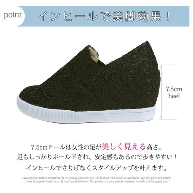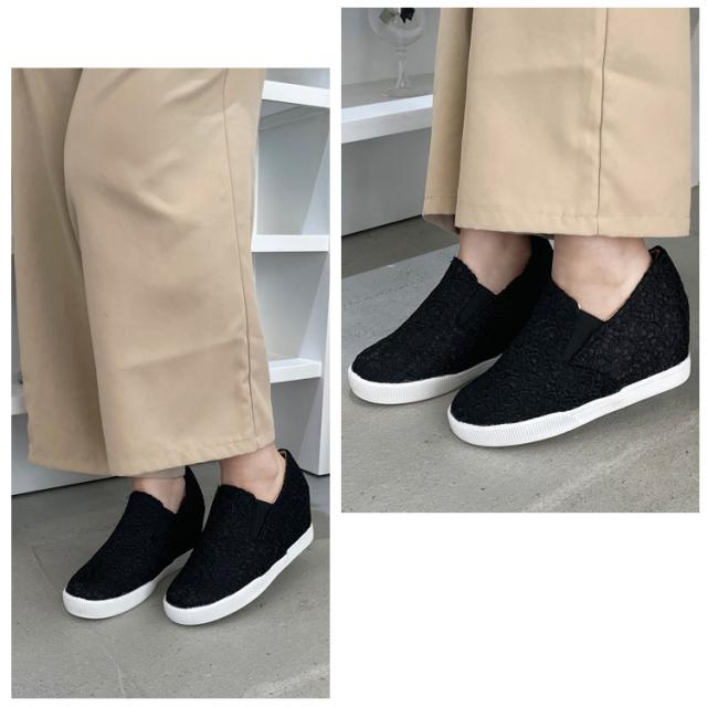 全品送料無料一部除く アウトレットインヒールスリッポン レースブラック 1001【即納】 紐なし おしゃれ 大きいサイズ ローカット 痛くない 履きやすい ぺたんこ
