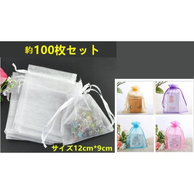 新色 約100枚 約12cm × 9cm オーガンジー 布 半透明 巾着 ギフト ラッピング 袋 バッグ 包装袋 かわいい おしゃれ ハロウィン バレンタイン ホワイトデー お世話になりました ありがとう を込めて