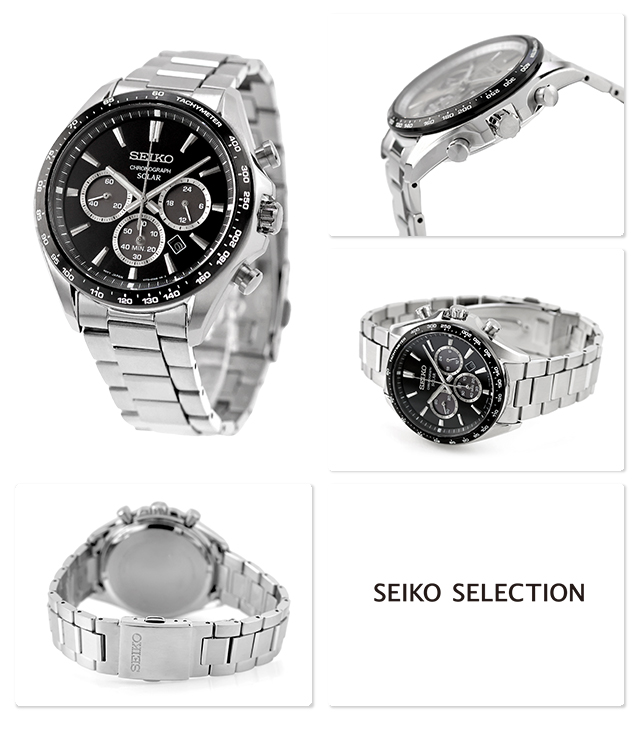 セイコーセレクション S Series ソーラー 腕時計 ブランド メンズ クロノグラフ SEIKO SELECTION SBPY185 アナログ ブラック 黒 おしゃれ 防水 プレゼント 男性 実用的