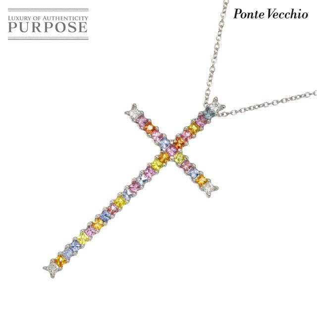 ポンテヴェキオ PV サファイヤ 2.17ct ダイヤ 0.27ct ネックレス 40cm K18 WG 750 クロス レディース 90307718 【中古】BJ