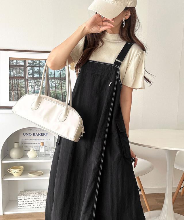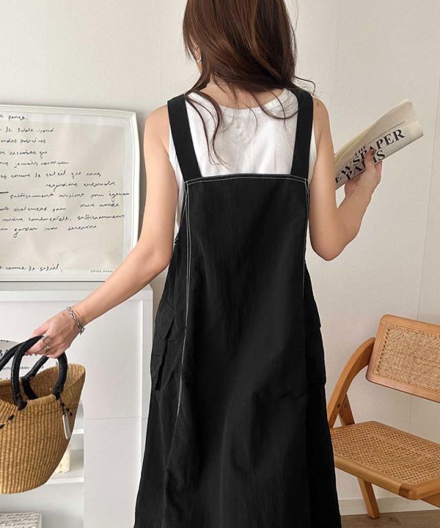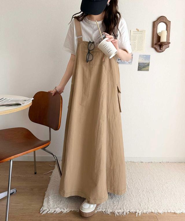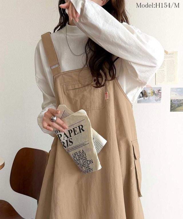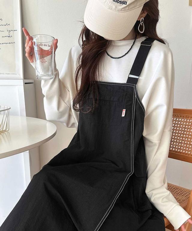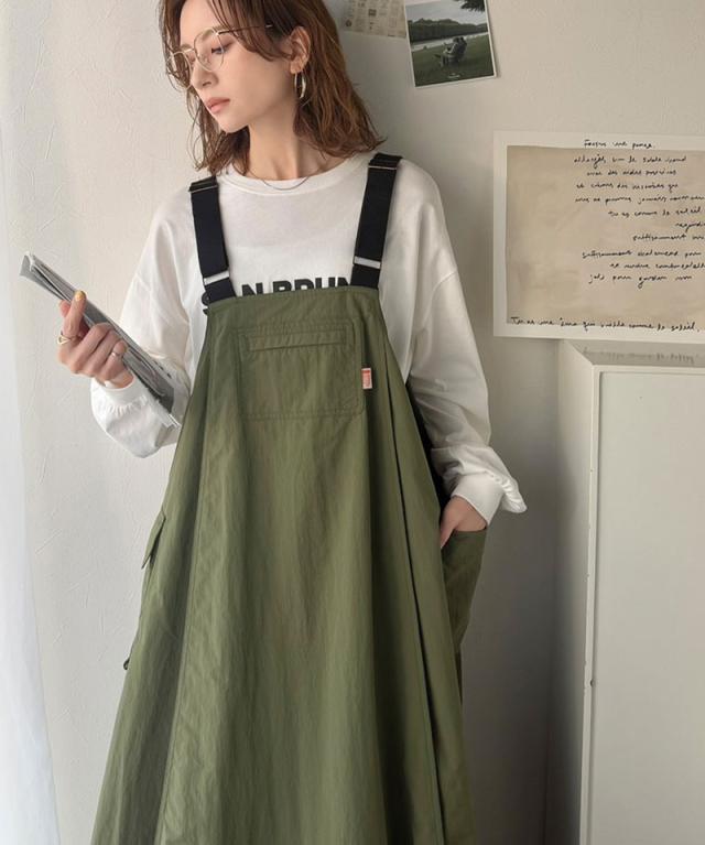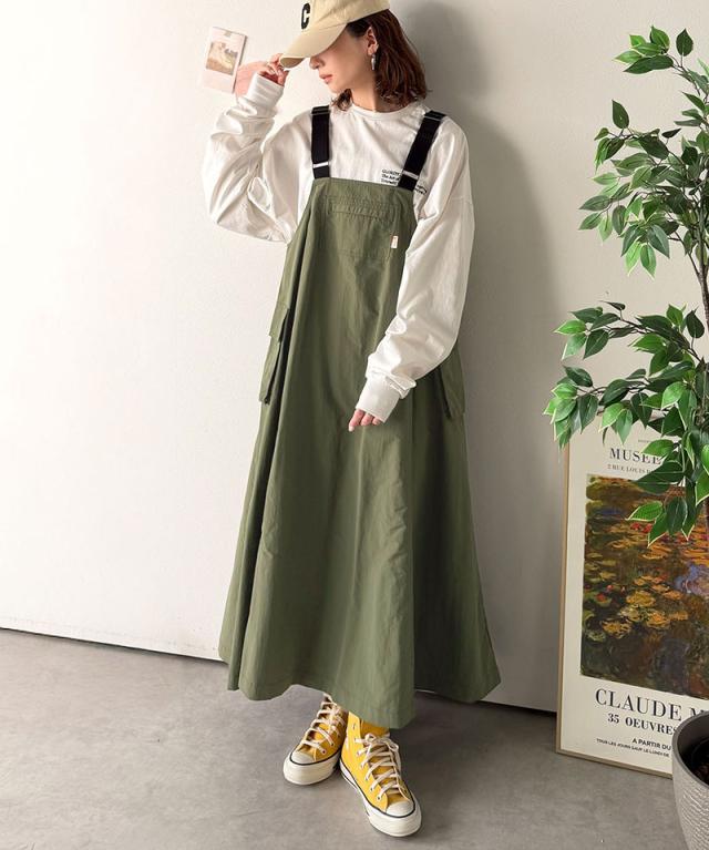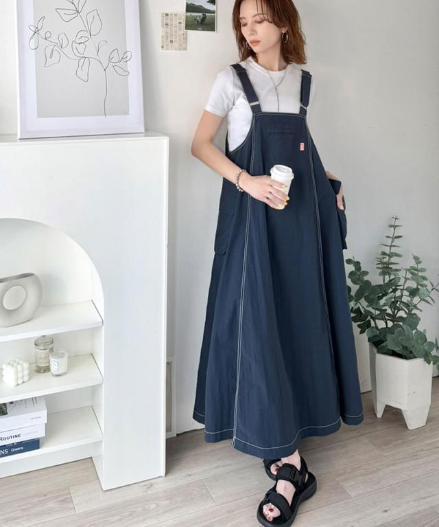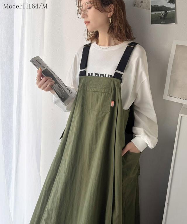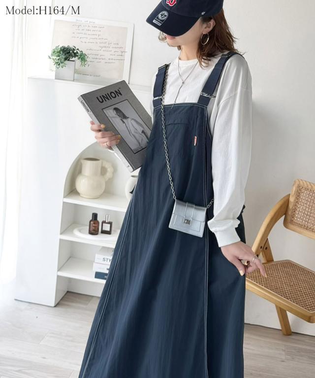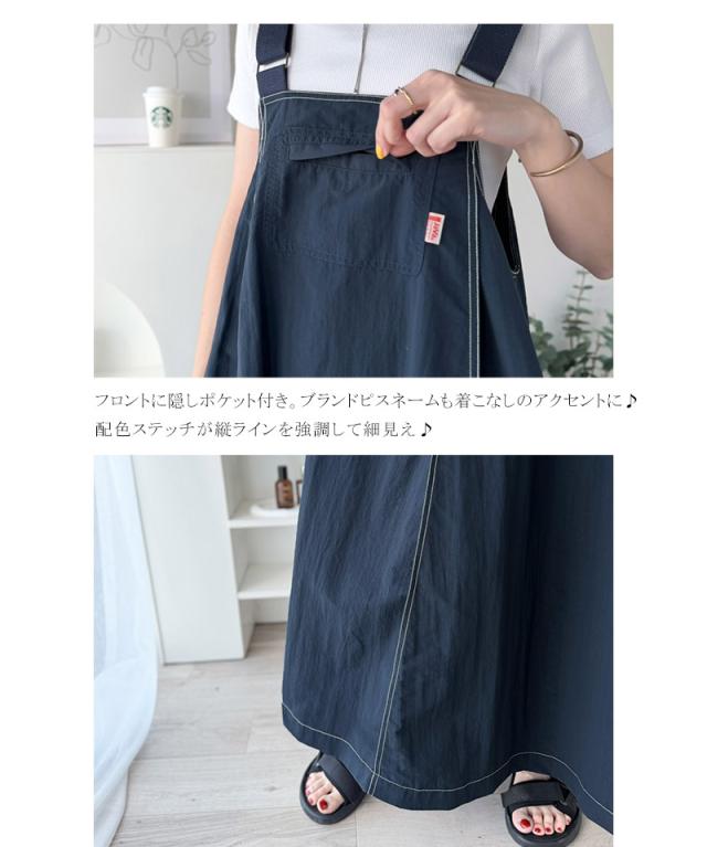 クラシカルエルフ春新作 java ジャバコラボ ジャンパースカート レディース ロング マキシ丈 ワッシャー お洒落 快適 ナイロン カジュアル 軽やか シンプル リラックス 大きいサイズ 黒 白 2026ss jv1265051
