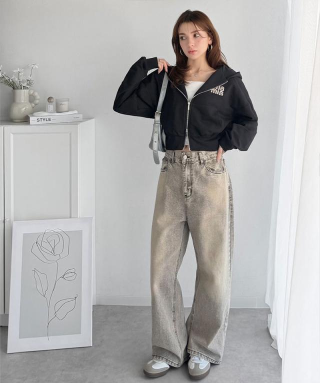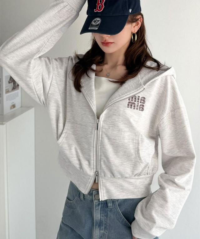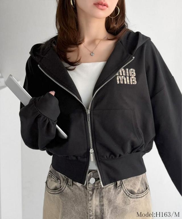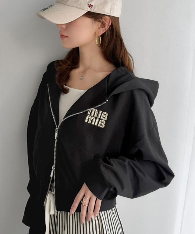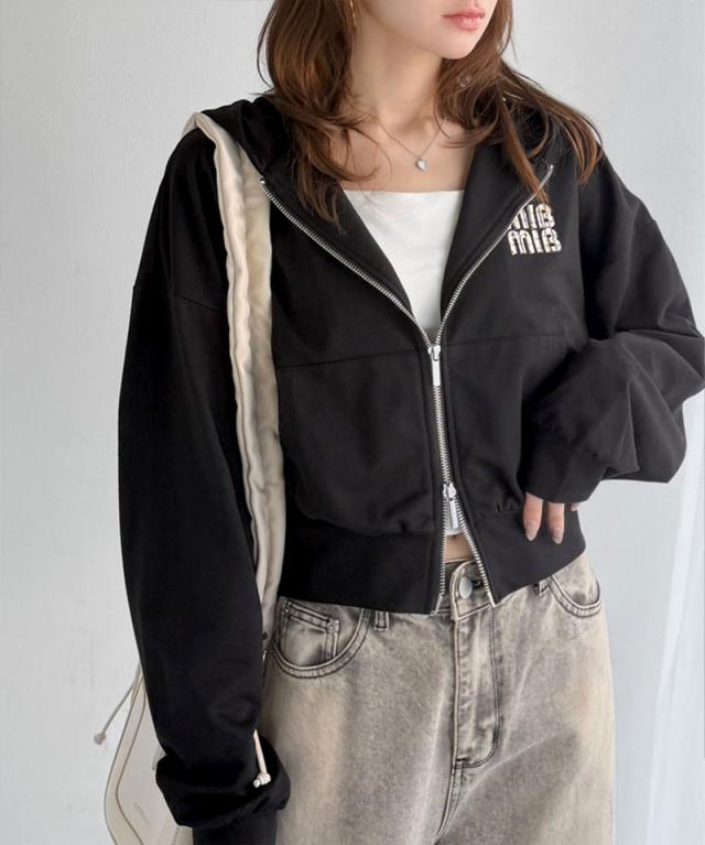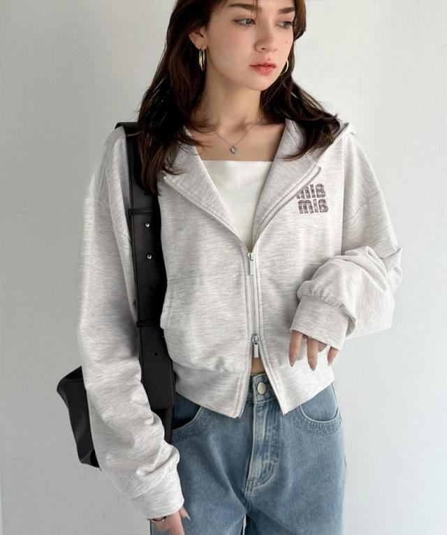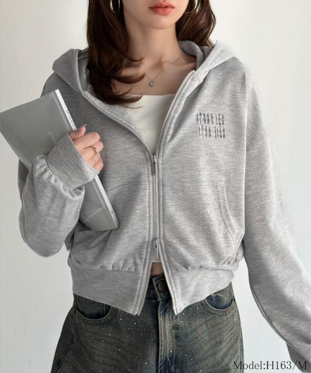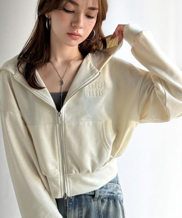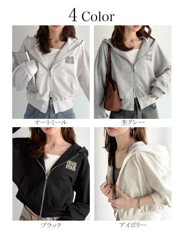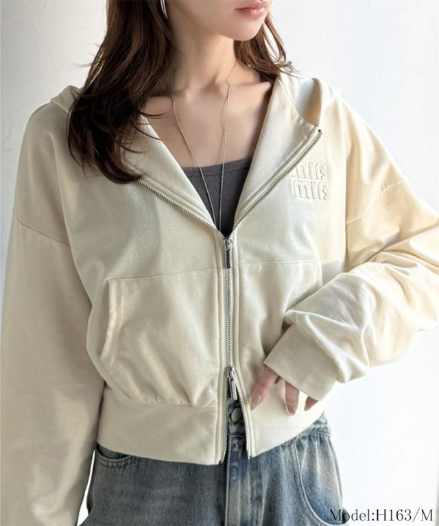 クラシカルエルフ春新作 mily bilet ジップアップパーカー パーカー レディース おしゃれ トップス 胸元 ワッペン 付き ダブルジップ スウェット 長袖 ショート丈 大きいサイズ 2026ss mi1329090