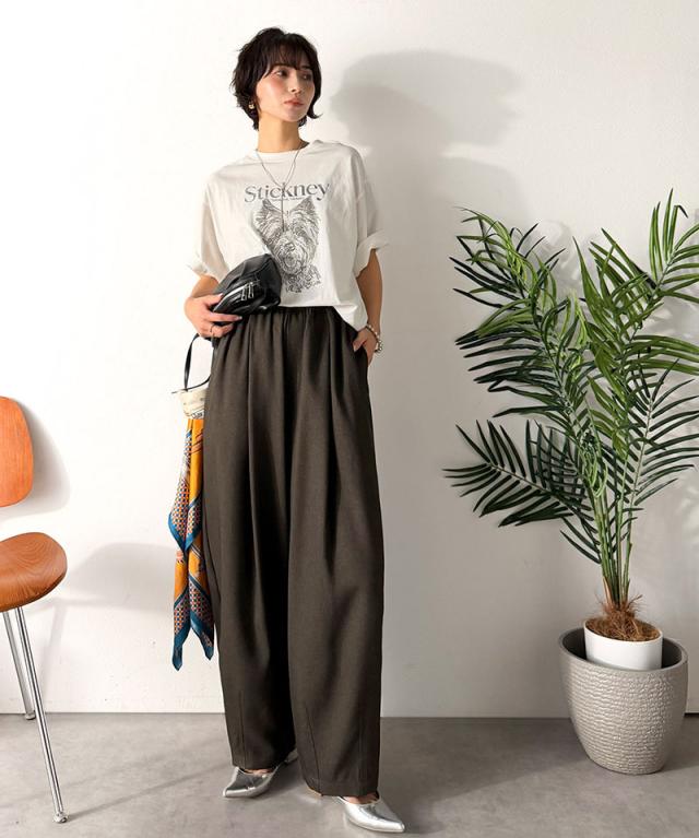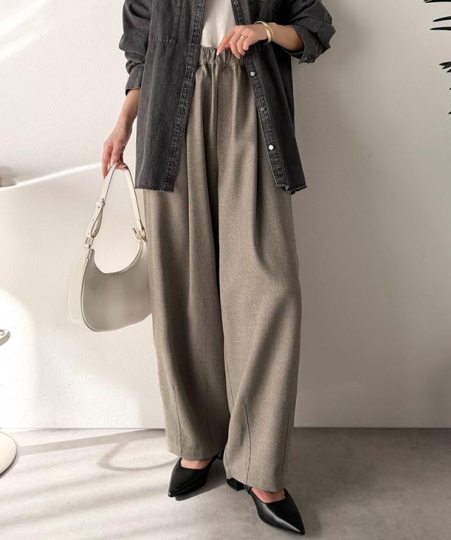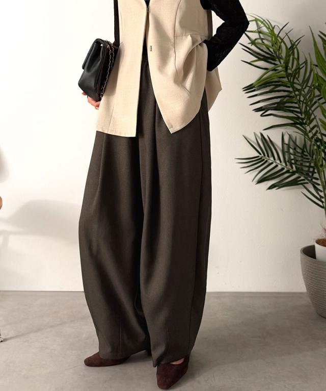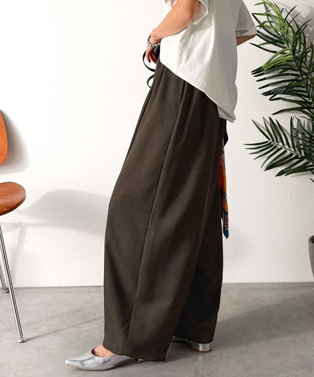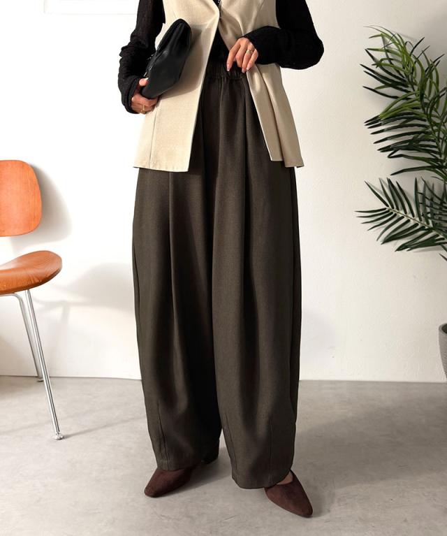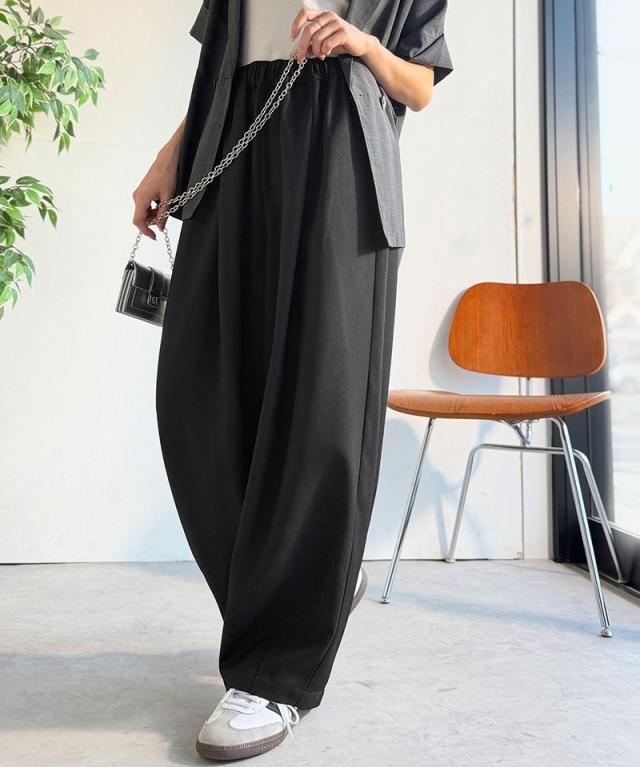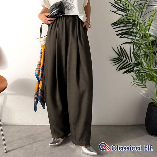 クラシカルエルフ春新作 イージーパンツ レディース ボトムス パンツ コクーン ゆったり カーブシルエット デイリー トレンド感 カーブデザイン ロングシーズン カジュアル フォーマル ウエストドロスト 大きいサイズ 黒 白 2026ss ce1070190