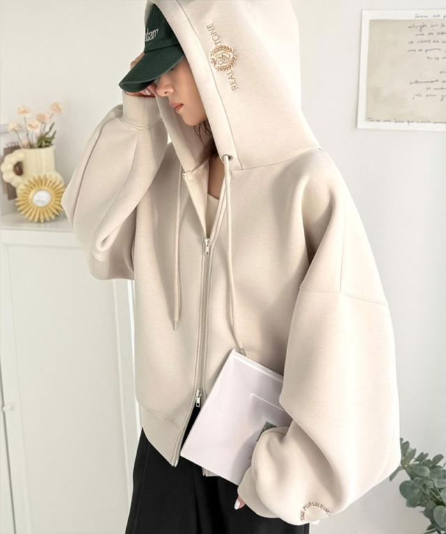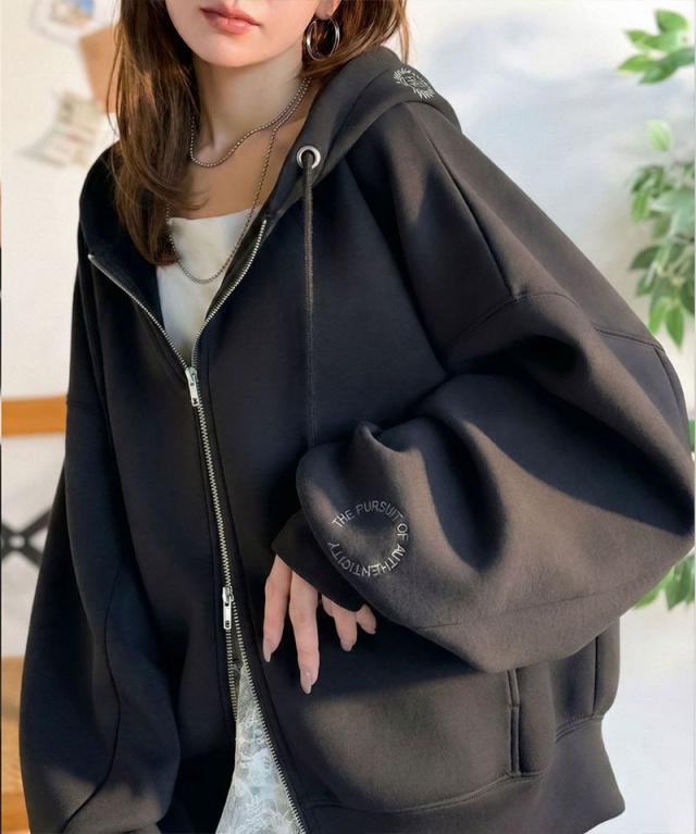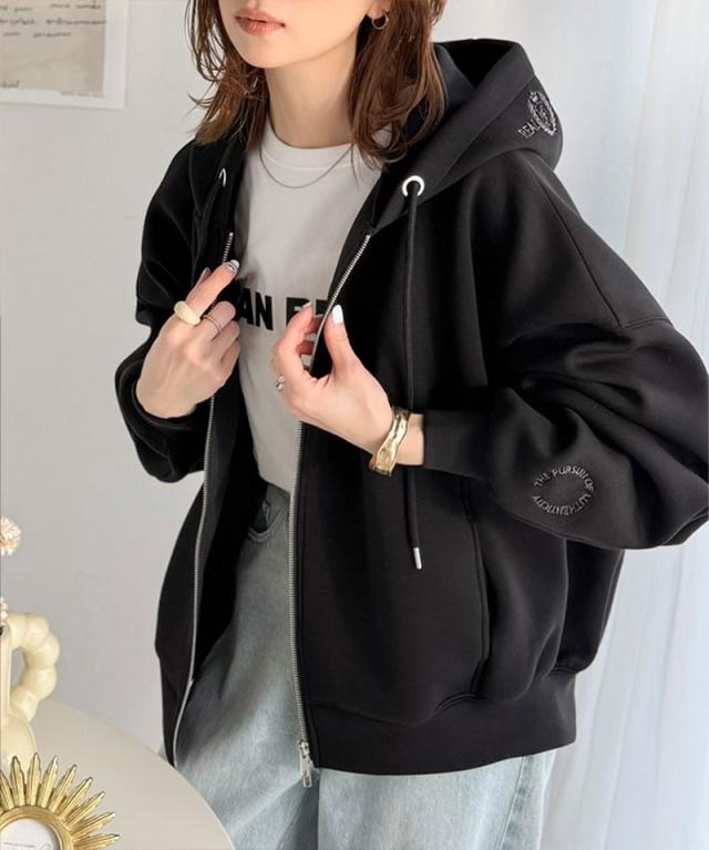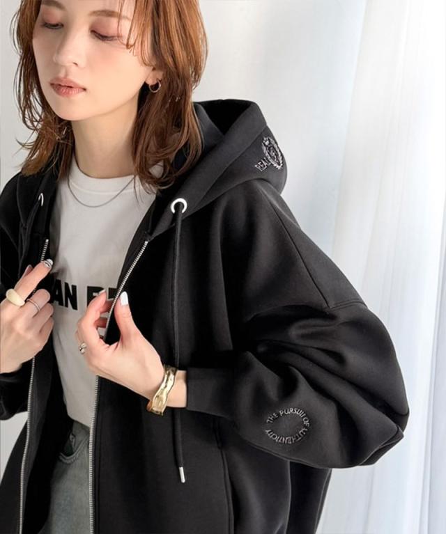 クラシカルエルフ春新作 パーカー レディース おしゃれ トップス クロップド ワイド ダンボール 切替パーカー 長袖 ダブルジップ ゆるっと オーバーサイズ 大きいサイズ 2026ss ce1260609