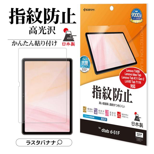 dtab d-51F Lenovo TAB8 Lenovo Idea Tab Lenovo Tab K11 Gen 2 LAVIE Tab T11N フィルム 全面保護 高光沢 透明 クリア 指紋防止 抗菌 日本製 タブレット ディータブ レノボ ラヴィ 保護フィルム G5261D51F ラスタバナナ