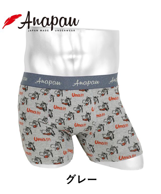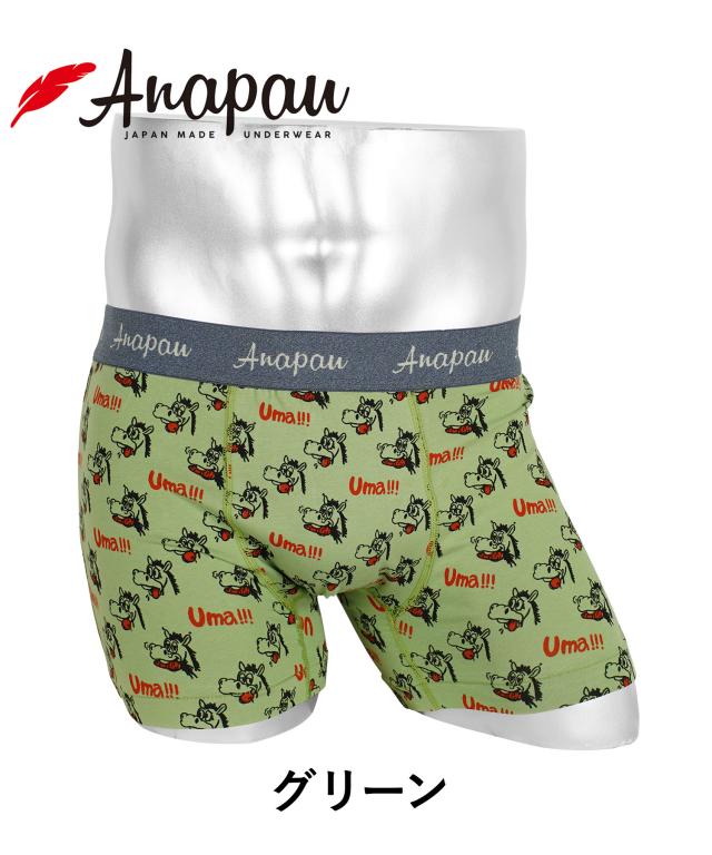 メール便 アナパウ Anapau ボクサーパンツ メンズ アンダーウェア 国産 日本産 綿混 コットンストレッチ 前閉じ 馬 競馬 アニマル柄 動物 ワンポイント ブランド 男性 プチギフト 誕生日 プレゼント 彼氏 父 息子 ギフト 記念日