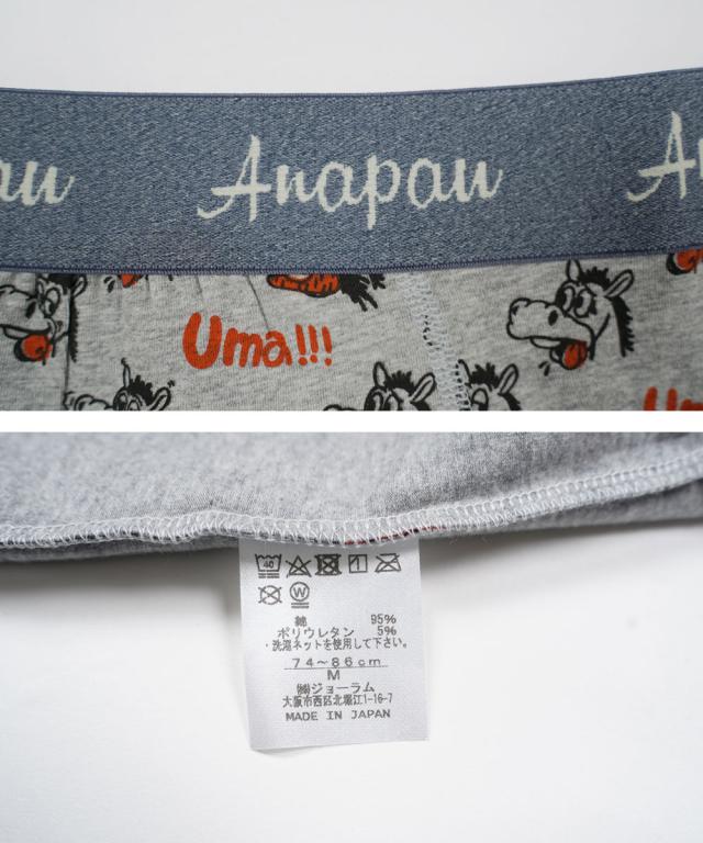 美味しいものも食べて これを穿けば「うま」くいくかも?!Anapau(アナパウ)のメンズボクサーパンツ。柔らかくしっかりした良質なコットンストレッチの生地は、Anapauのこだわりがつまった最高の穿き心地!安心のmade in japanだからプレゼントにもおすすめです☆