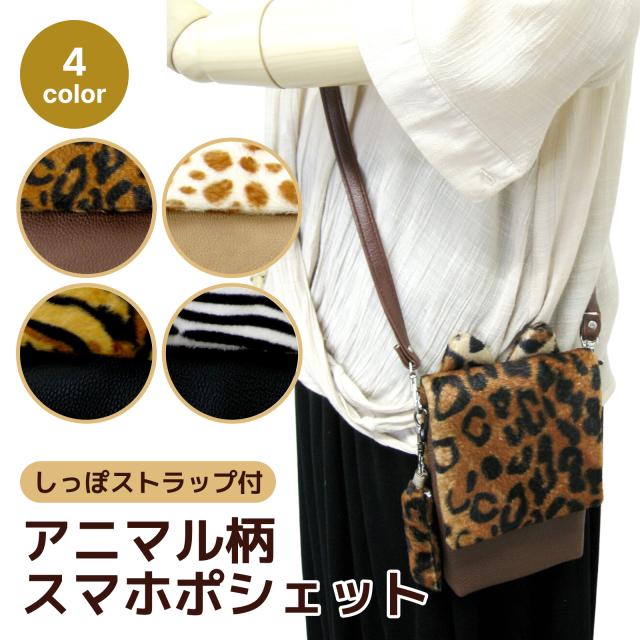 ★ 送料無料 ★ スマホショルダー スマホポーチ スマホポシェット アニマル柄 しっぽストラップ付 レディース ミニバッグ ヒョウ柄 シマウマ柄 キリン柄 トラ柄 タイガー ジラフ ゼブラ レオパード 大人 中学生 高校生 ティーンズ おしゃれ かわいい ふわふわ