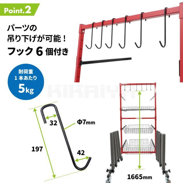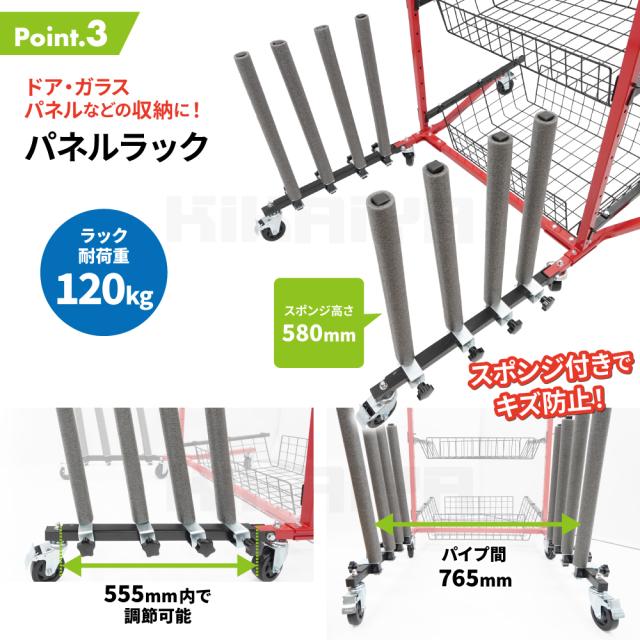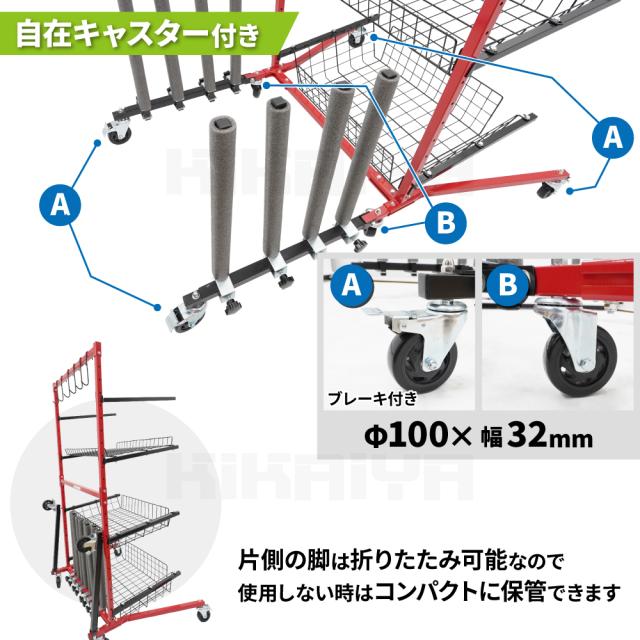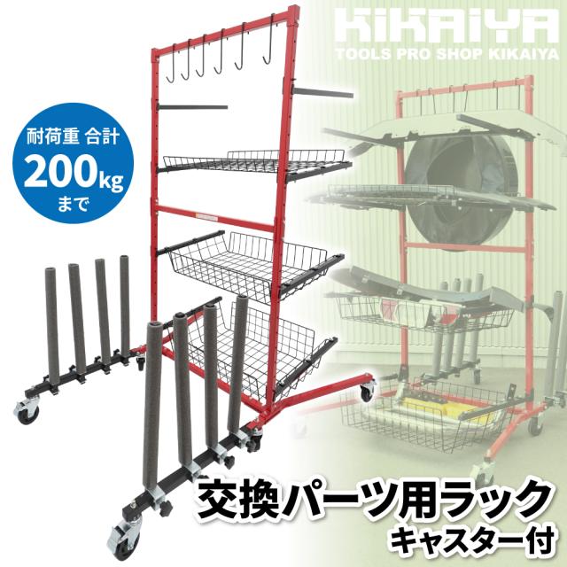 バンパースタンド 交換パーツ用ラック キャスター付 耐荷重合計200kg 自動車パーツカート プロ用 4段 整理整頓 樹脂バンパー フェンダー カーパーツ KIKAIYA