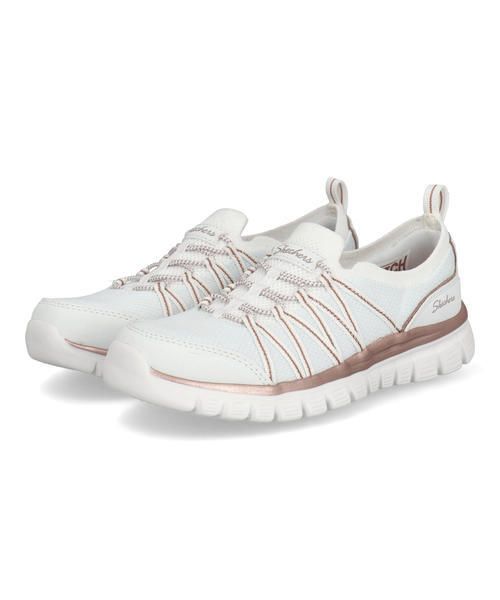 SKECHERS スケッチャーズ GRACEFUL-PURECRUSH【軽量】レディーススニーカー スリッポン(グレースフル-ピュアクラッシュ) 100888 WTRG ホワイト/ローズゴールド