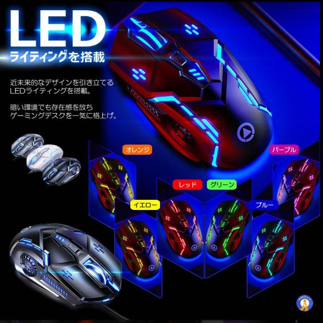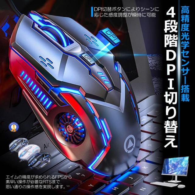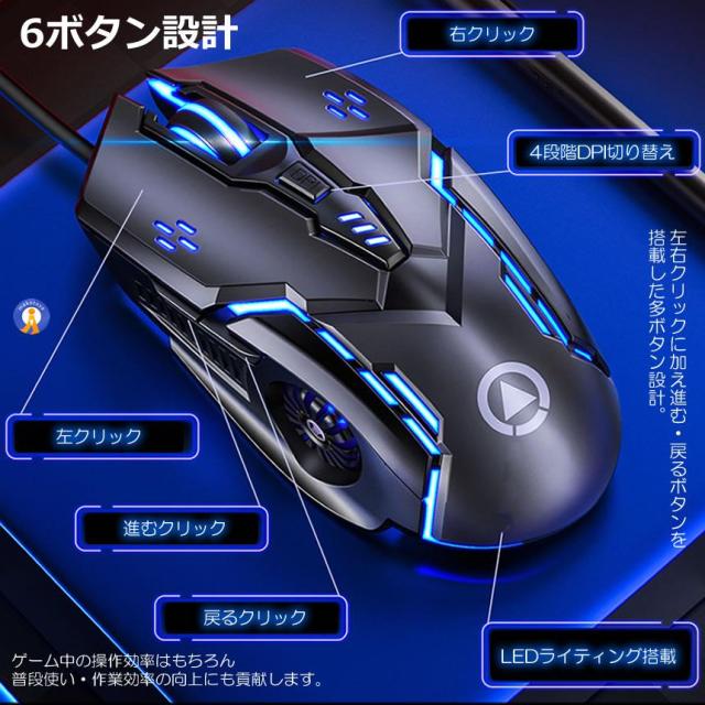 2個セット ゲーミングマウス 有線 高精度DPI切替 LEDライト搭載 多ボタン 6機能 人間工学設計 PC用 光学式 PIKAMO